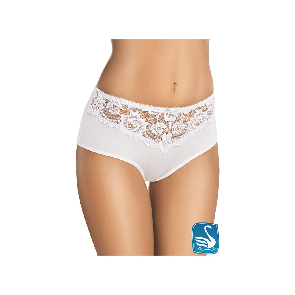 Elegantné dámske nohavičky.Majú mierne zvýšený pás.Na prednej strane je saténová mašľa.Na hornom okraji čipkového švu.Model dokonale prilieha k telu a je pohodlný.Vyrobené z kvalitnej bavlny.95% bavlna, 5% elastan.Dodatočné parametre