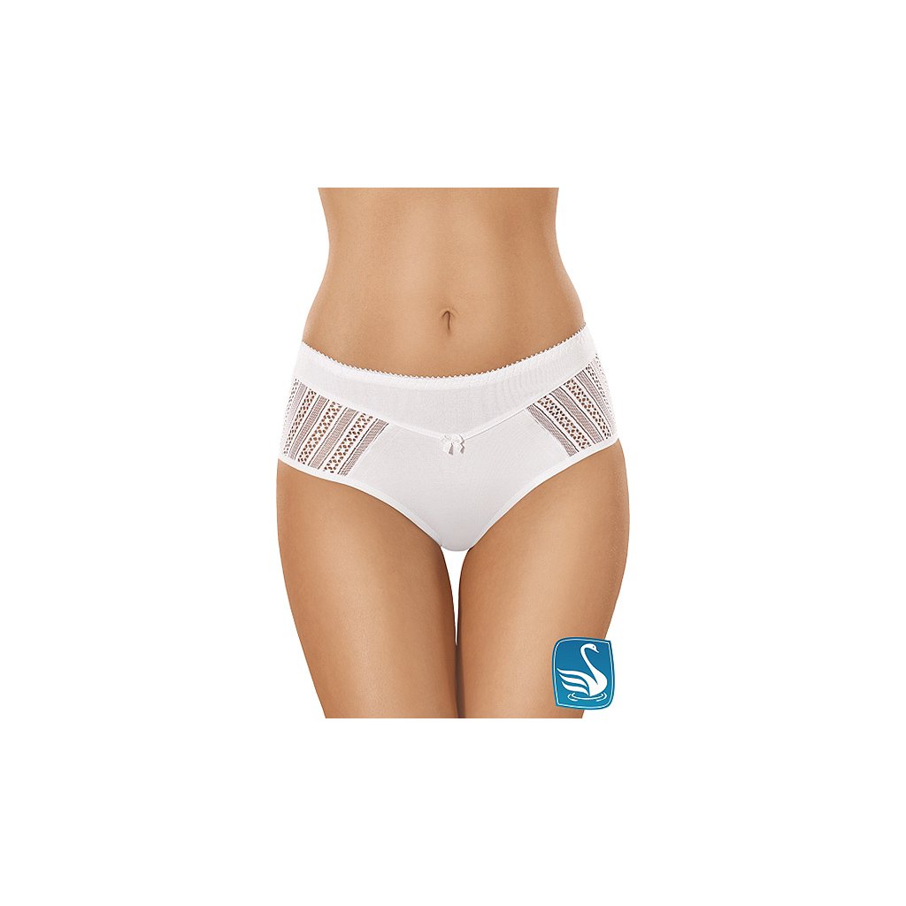 Elegantné dámske nohavičky Gabidar 62 klasického strihu s vysokým pásom a širokými bokmi zdobené jemnými prúžkami a mašličkou na prednej strane.Dodatočné parametre