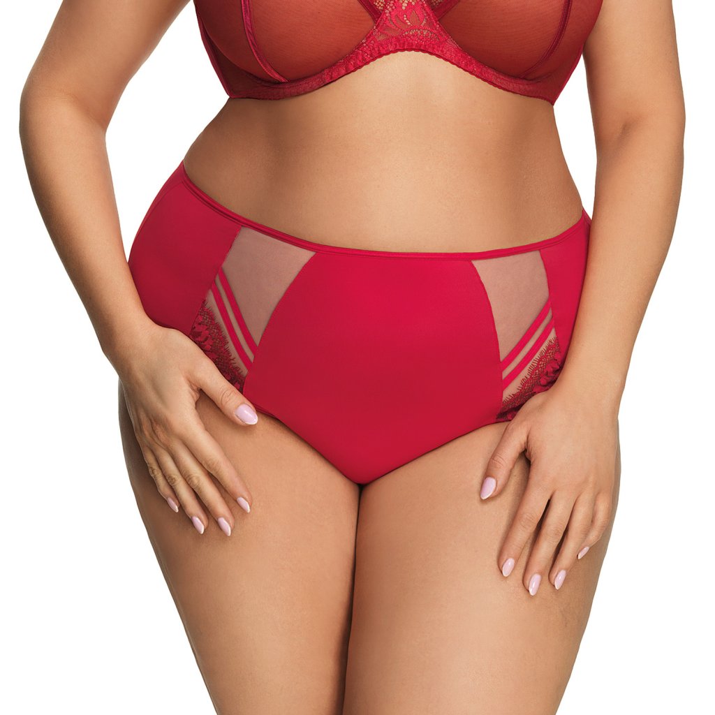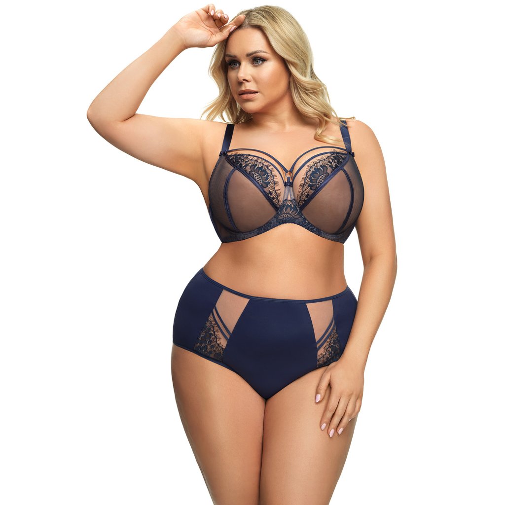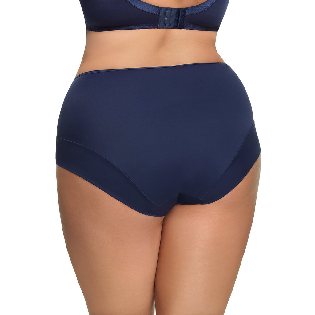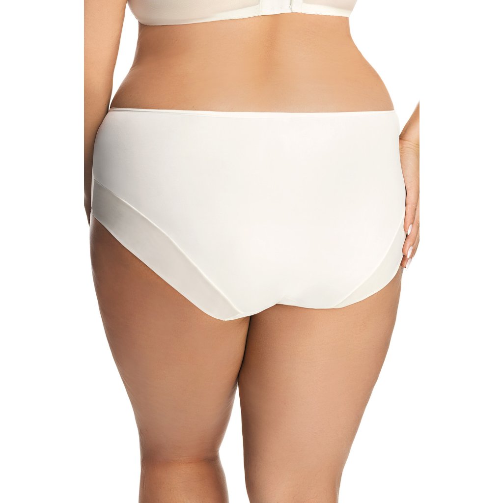 Elegantné vysoké dámske nohavičky, ktoré sú vyrobené z mäkkého mikrovlákna. Model je vpredu zdobený dvoma vložkami z béžového tylu a jemnej čiernej čipky. Zadná časť nohavičiek je hladká. Nohavičky sú vpredu olemované hladkou, tenkou gumičkou. Zadná časť nohavičiek je podšitá hladko skladaným dvojitým elastickým tylom.
