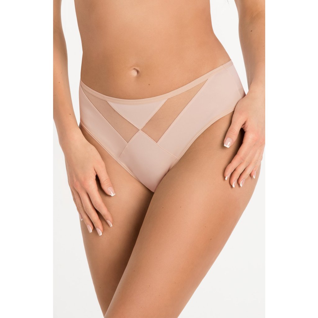 Elegantné dámske nohavičky s vysokým pásom. Sú ušité z mäkkého mikrovlákna a zdobené tylovými sieťkami. Zadná časť nohavičiek je zakončená hladkým dvakrát preloženým elastickým tylom.Zloženie: 90% polyamid, 7% elastan, 3% polyester.Dodatočné parametre