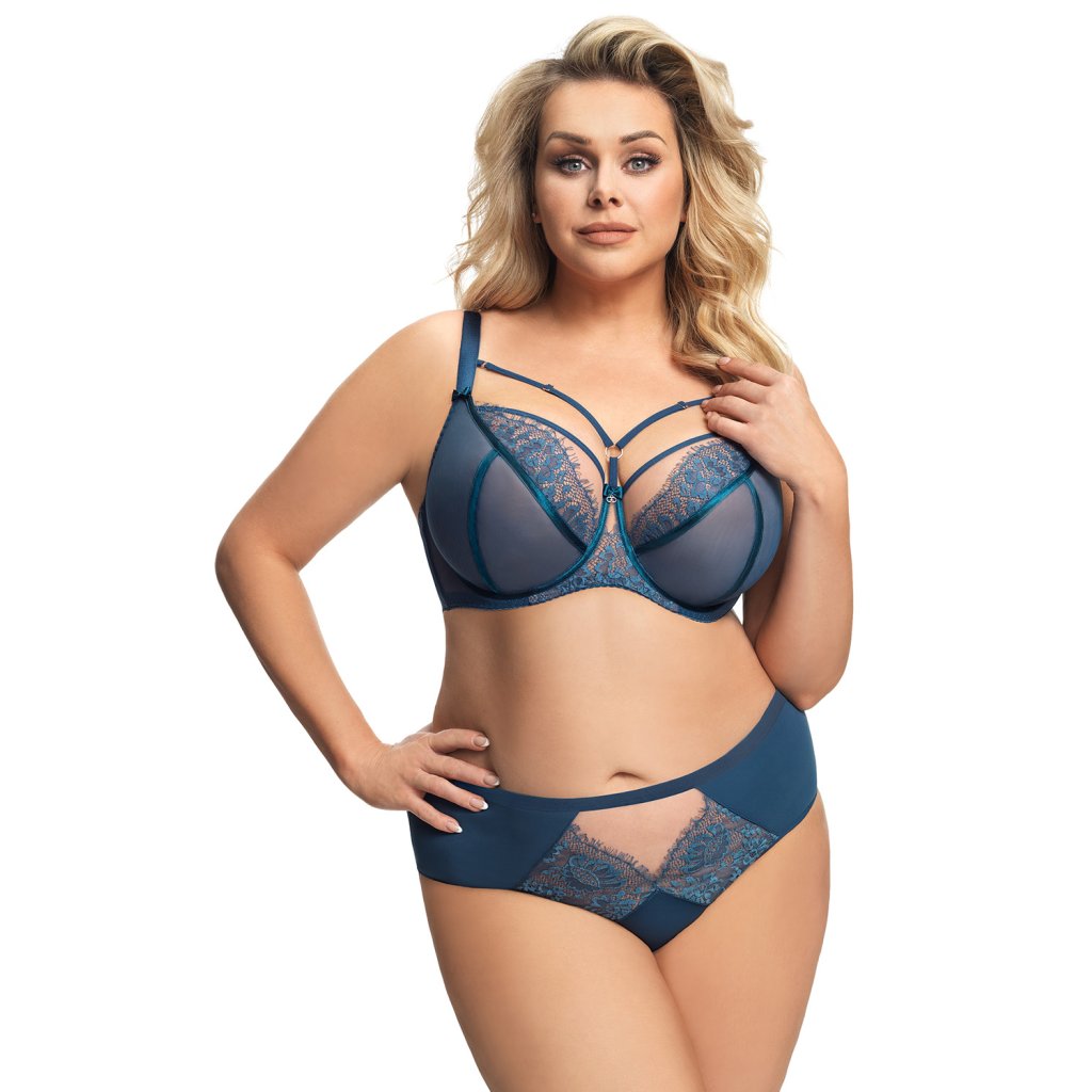 Elegantné nohavičky s vysokým pásom. Je vyrobená z mäkkého mikrovlákna zdobeného tylom a jemnými čipkovanými vložkami na prednej a zadnej strane. Späť hladko. Nohavice sú vpredu zakončené tenkou hladkou gumičkou. Zadné nohy sú zakončené hladkou dvakrát skladanou tylovou gumou.MatZloženie: erial: 90% polyamid, 7% elastan, 3% polyester.