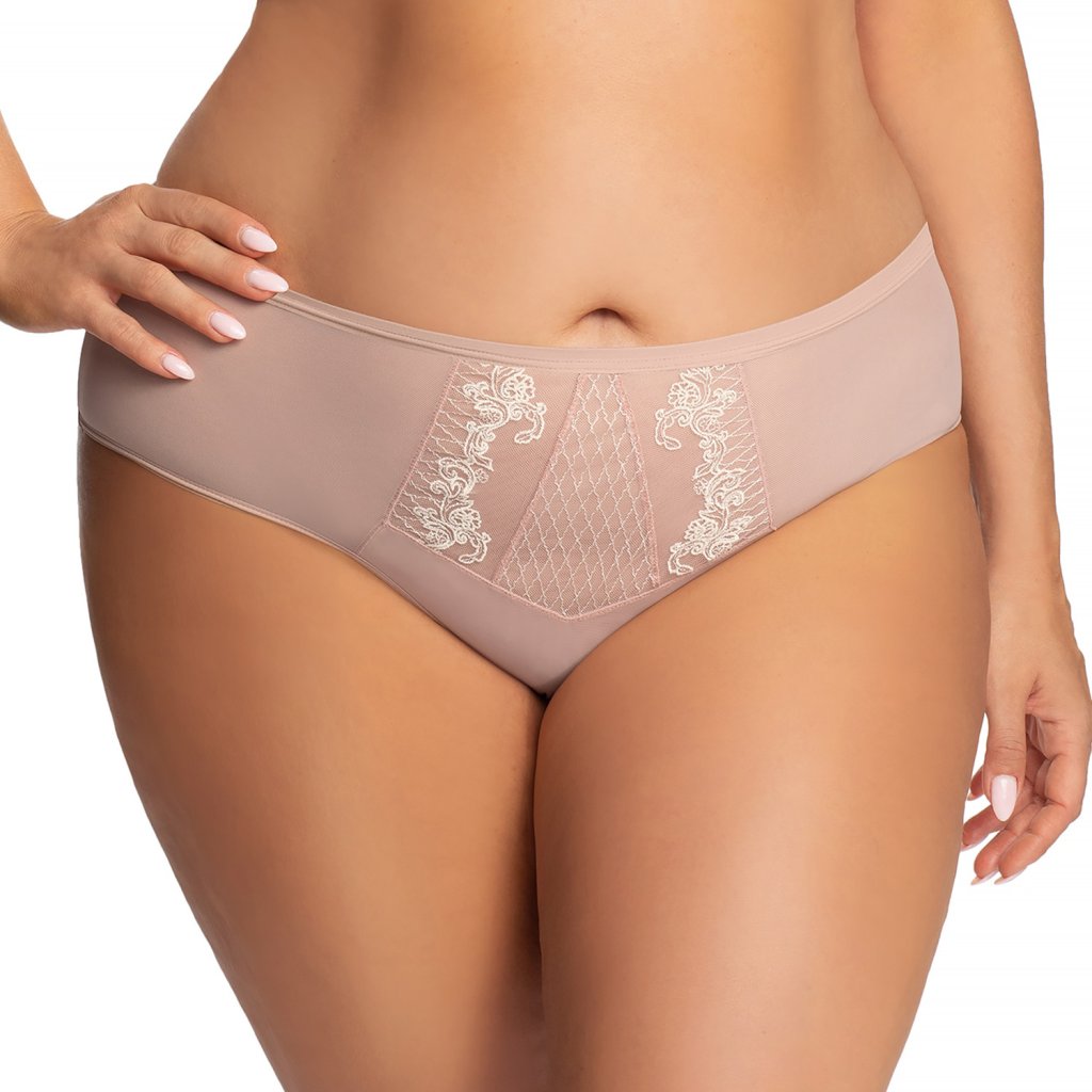 Dámske nohavičky s plným strihom - predná strana s vyšívanou sieťovanou vložkouZloženie: 90 % polyamid, 7 % elastan, 3 % polyester.Dodatočné parametre