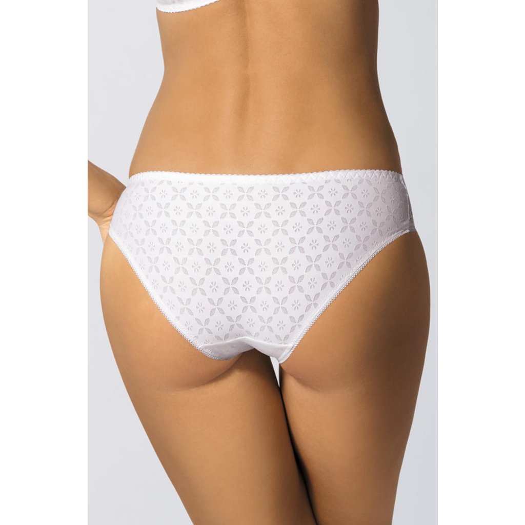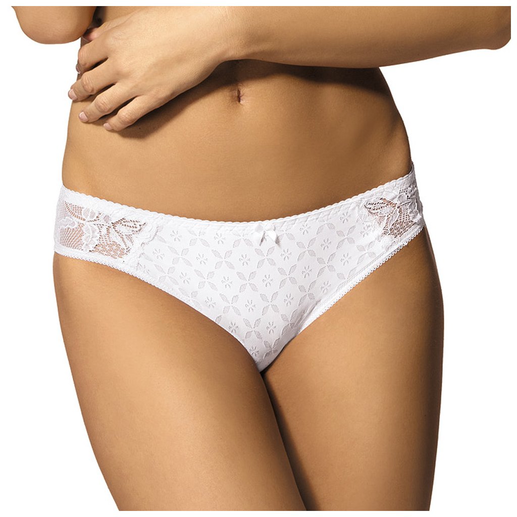 Klasické nohavičky zdobené kvetinovým motívom. Jemná mašľa a krásna čipka zdobiaca boky im dodávajú šarm.Zloženie: 68% polyamid, 20% polyester, 7% bavlna, 5% elastan.
