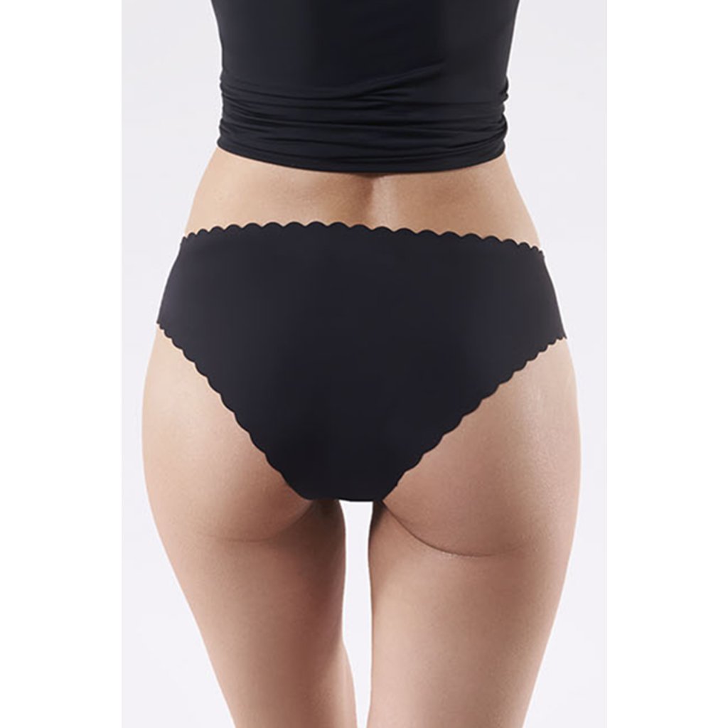 Klasické hladké dámske nohavičky s vrúbkovanými okrajmi.Vďaka bezšvovému, laserom strihanému lemu (pás a nohavičky) sa nohavičky nekrčia ani pod priliehavým oblečením. Model má bavlnenú vložku v rozkroku.Zloženie: 88% polyamid, 11% elastan, 1% bavlna. Bavlnená podšívka: 100 % bavlna.Dodatočné parametre