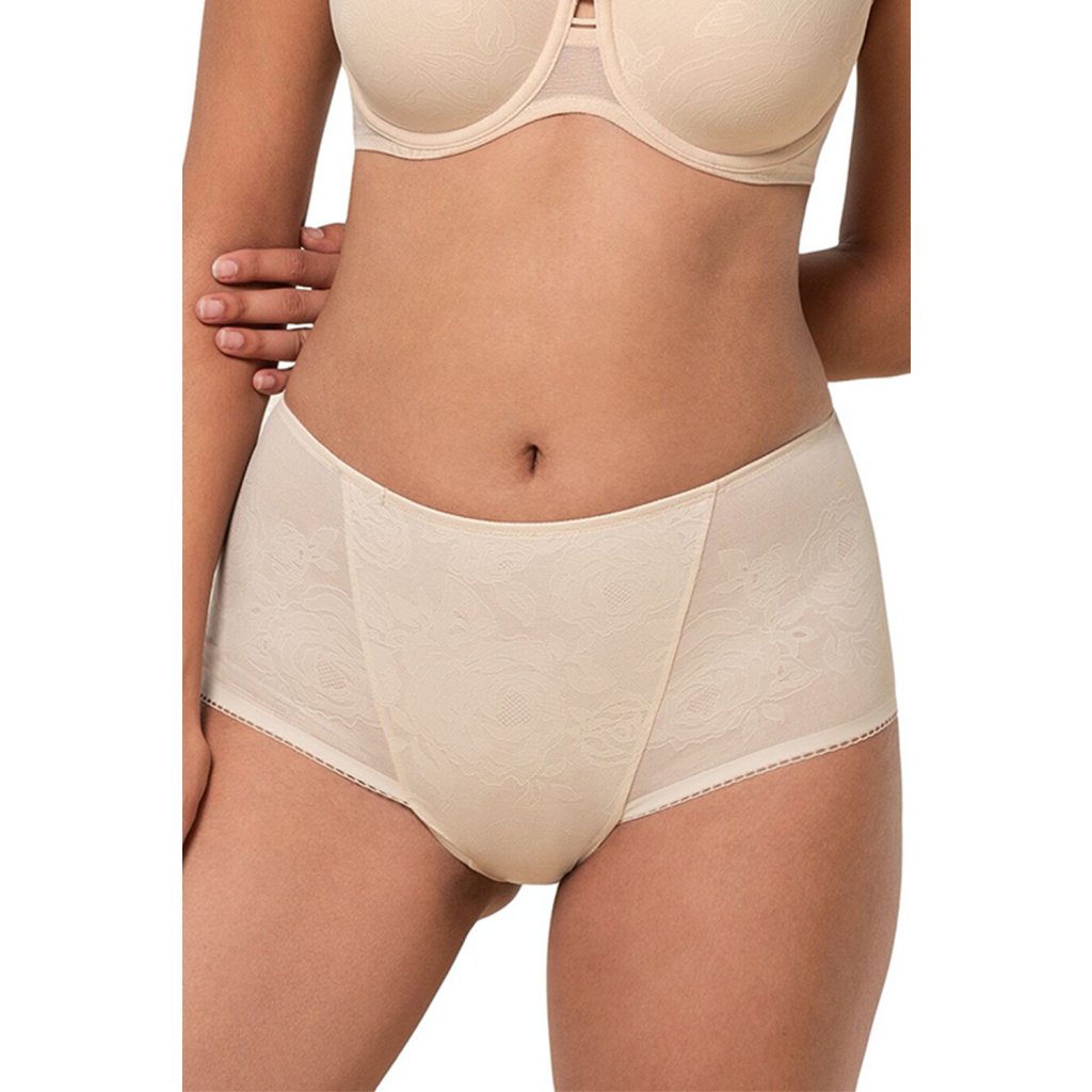 TriumphDodajte svojej spodnej bielizni nádych ženskosti a vyberte si tieto elegantné maxi nohavičky z radu Shape Wild Rose Sensation od . Maxi nohavičky so širšími bočnými panelmi a plochými švami okolo nohavičiek Vyrobené z elegantnej plochej čipky so stredným tvarovacím efektom Priedušný a elastický materiál s vysokou odolnosťou Neviditeľné pod priliehavým oblečením Zlaďte tieto krásne maxi nohavičky s jednou z podprseniek z radu Shape Wild Rose Sensation a vytvorte krásnu súpravu jemného, sťahovacieho spodného prádla.Matmateriál 71% polyamid , 29% elastan