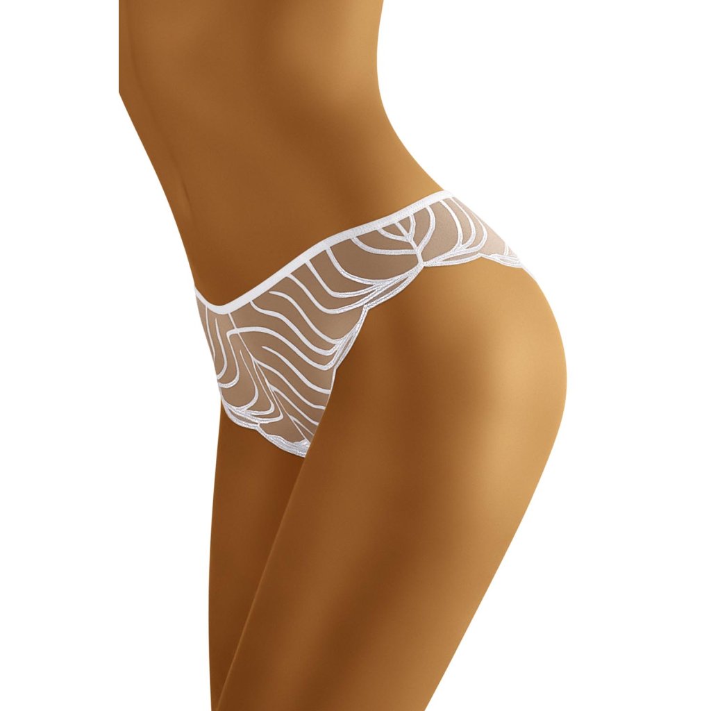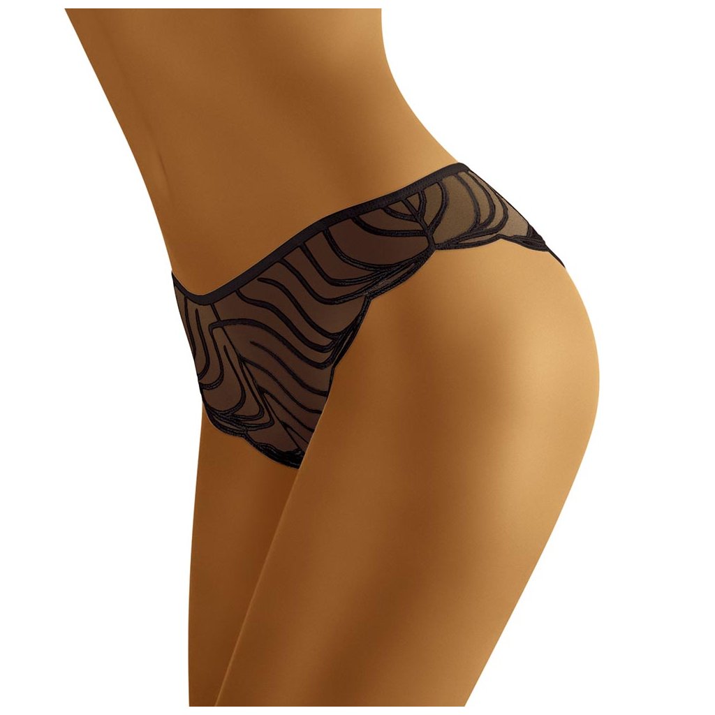 Wolbar Veľmi luxusné čipkované tangá Soleare. Dámske tangá sú vyrobené z kvalitnej elastickej čipky, takže sa veľmi dobre prispôsobia telu. Čipka je priehľadná s výrazným vzorom, vďaka čomu sú tieto tangá skutočne luxusným kúskom dámskeho šatníka. Tanga majú na bokoch širší pás čipky, takže strih pripomína brazílske nohavičky.Dodatočné parametre