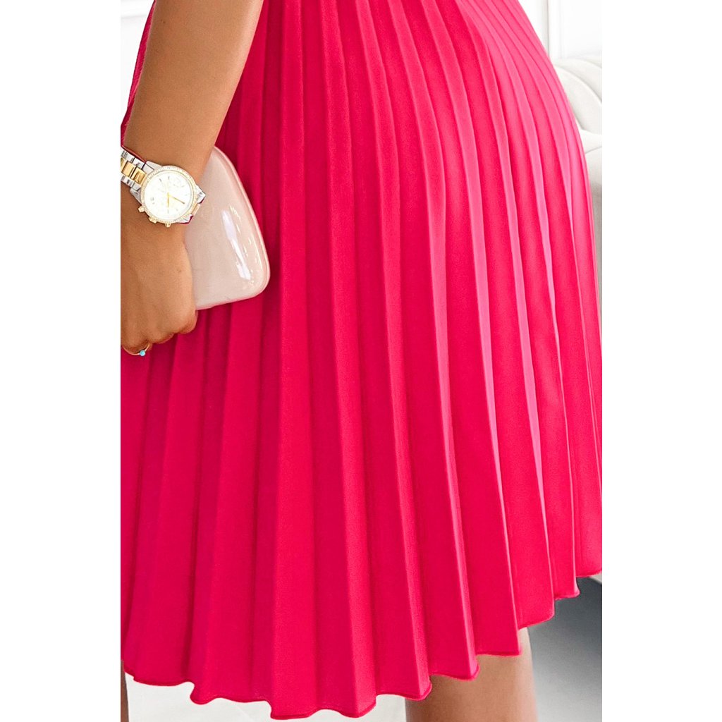 Numoco WENDY Plisované šaty s obálkovým výstrihom - malinová farba 385-2 - výpredaj