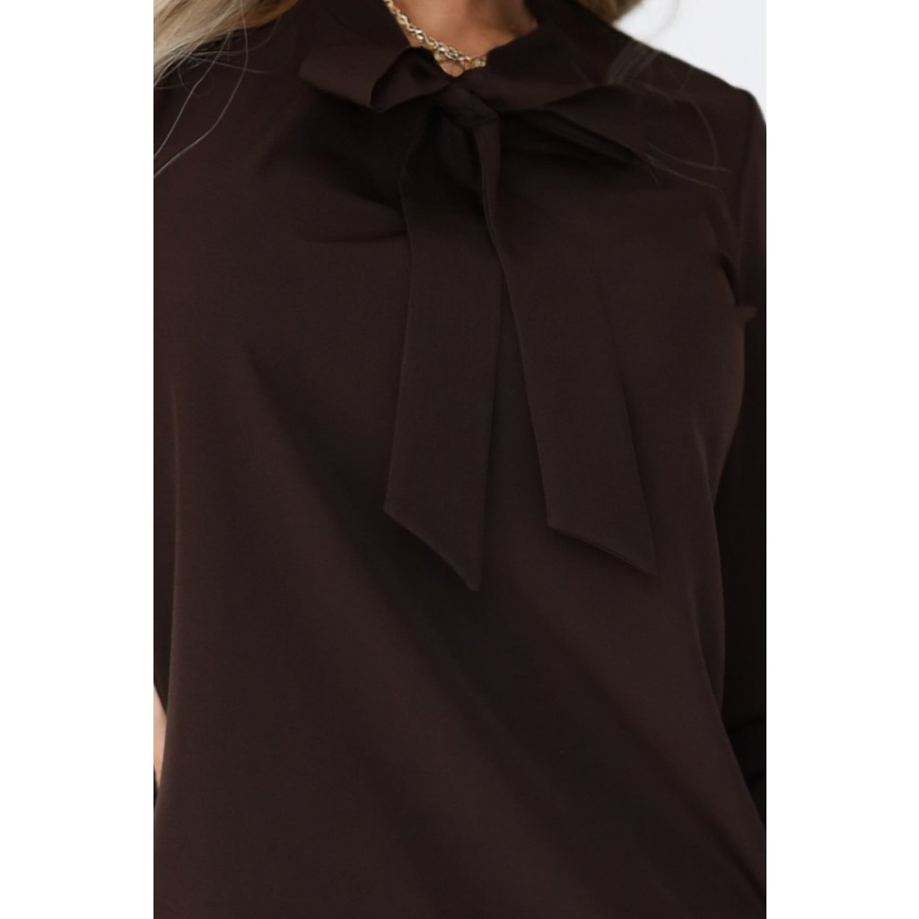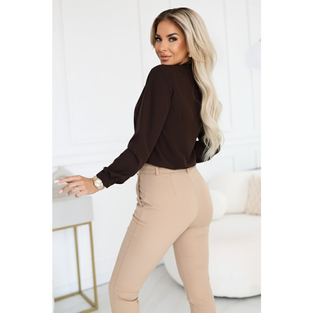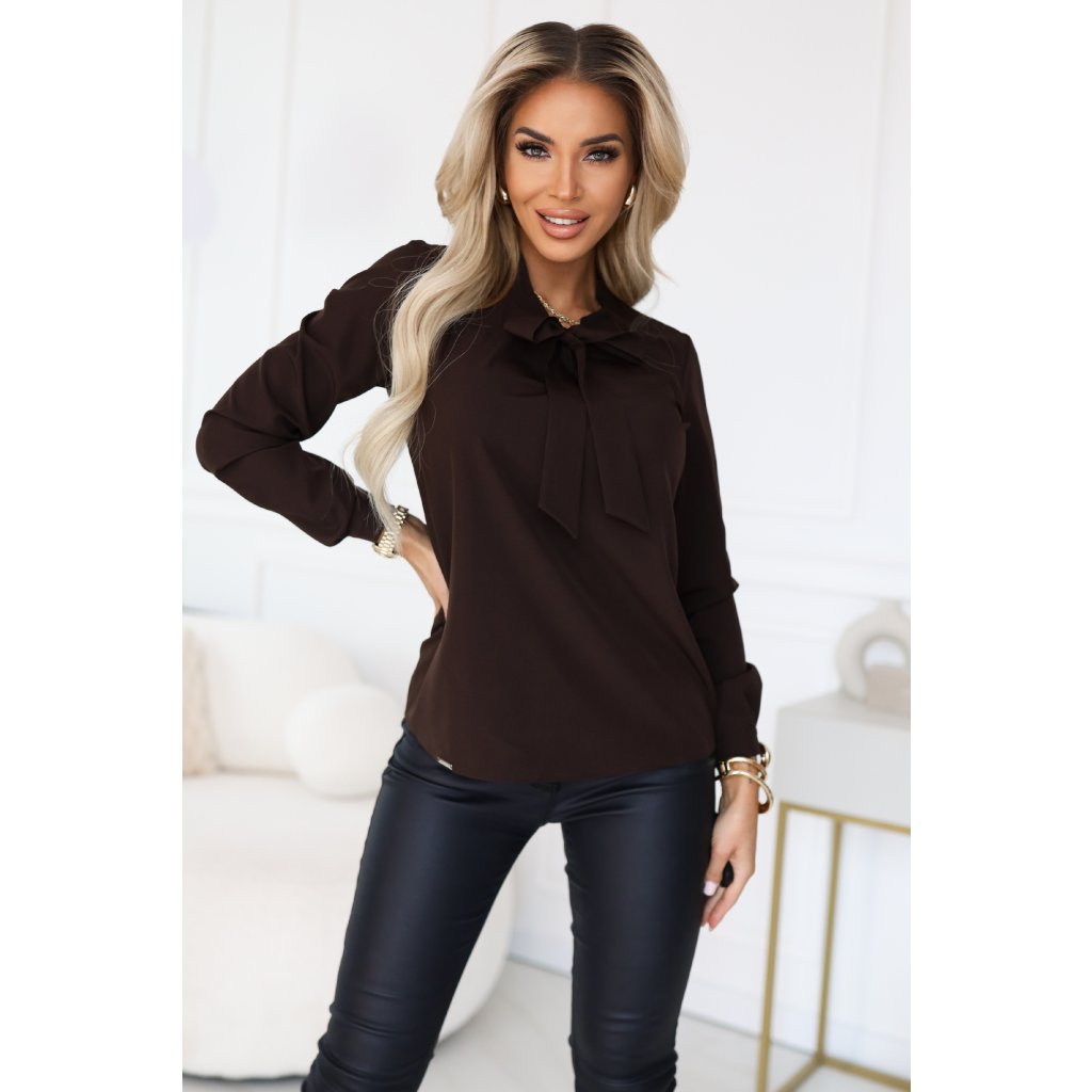 Obchodná blúzka s dlhým rukávom a zaväzovaním vpredu - čokoládová 140-29