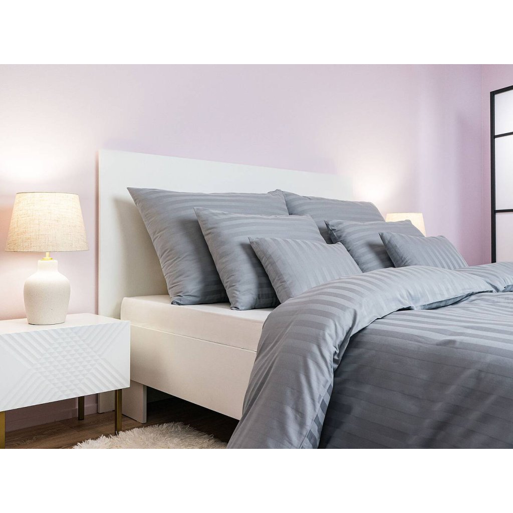 Obliečka je vyrobená z vysoko kvalitnej bavlny atlas grádl s atlasovou väzbou, ktorá zaisťuje jemný lesk, hladkosť a dlhú životnosť. Materiál je pevný, príjemný na dotyk a zároveň priedušný. Gramáž 145 g/m2 poskytuje optimálnu kombináciu elegancie a odolnosti.