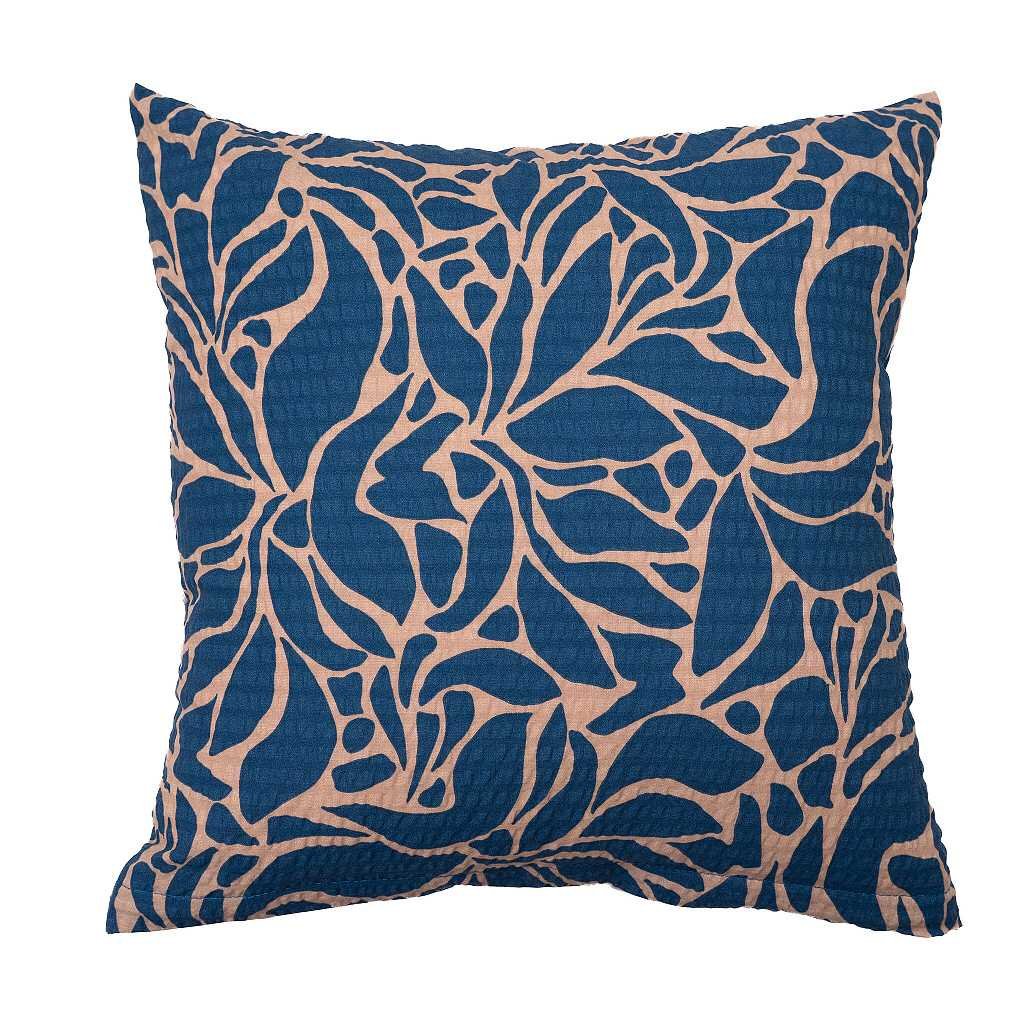 Elegantná obliečka na vankúš Sorat tmavo modrá zaujme svojim výrazným a moderným vzhľadom. Abstraktný motív v tmavo modrej farbe na svetlom podklade pôsobí štýlovo – ideálny pre moderné, prírodné aj mestské interiéry.