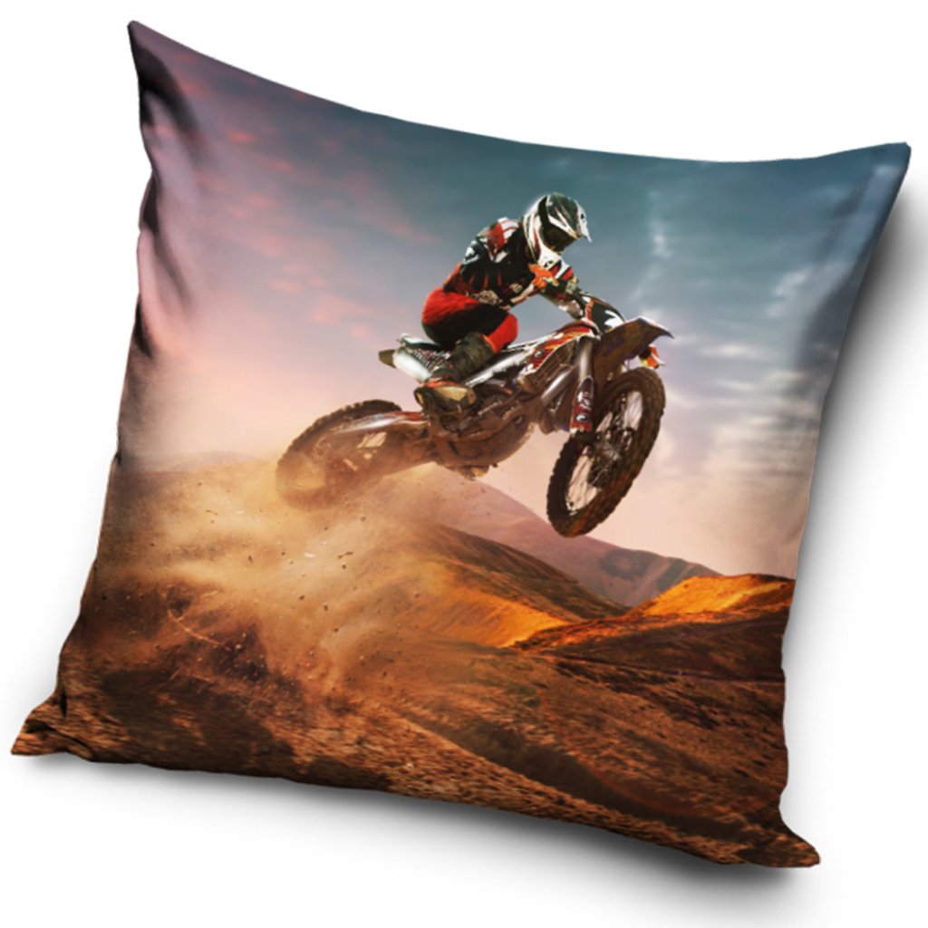 Doprajte svojmu domovu nádych energie a dobrodružstva s originálnou obliečkou na vankúš s motívom motokrosového jazdca v akcii
