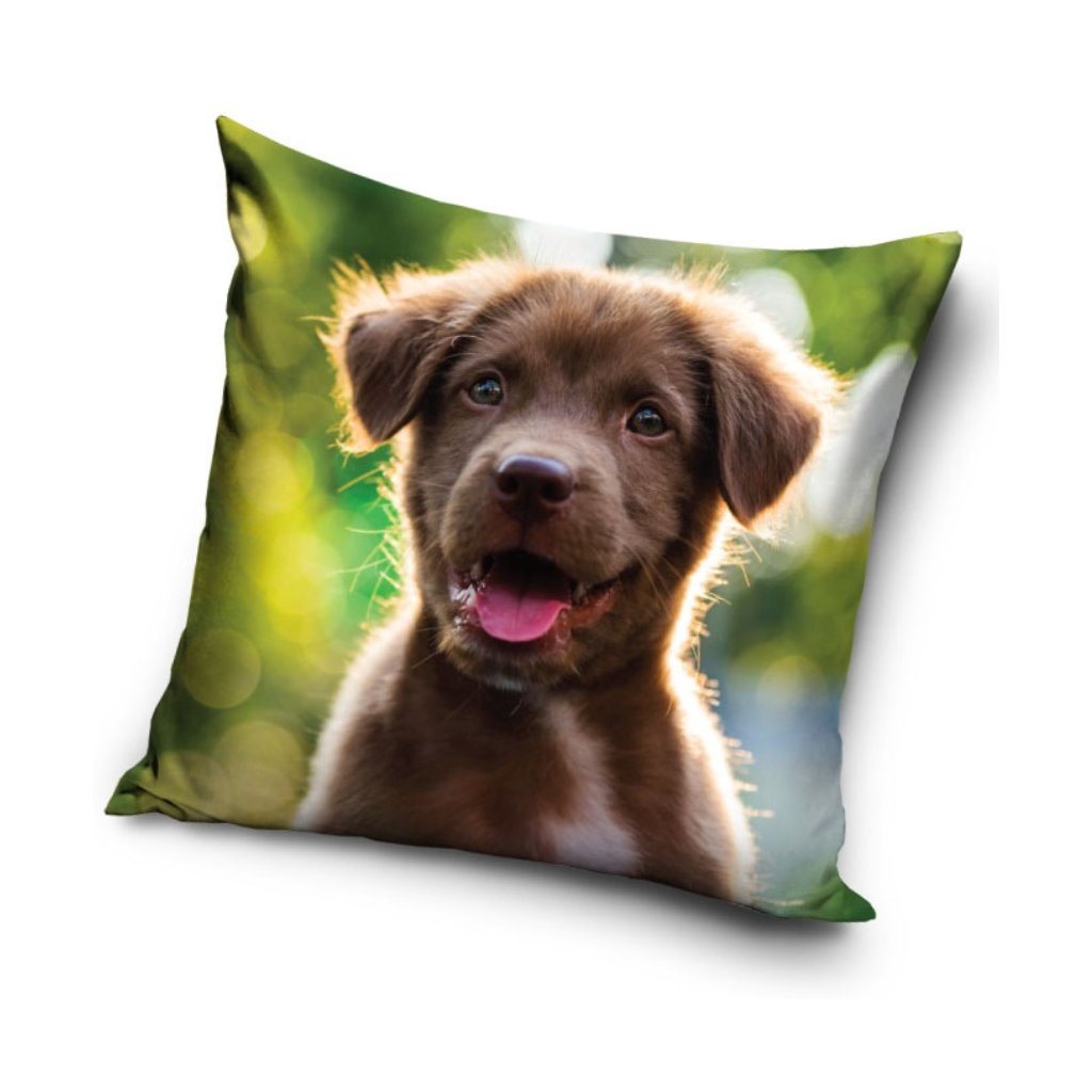 Dekoračná obliečka na vankúš Šteniatko Nezbedník , mározmer 40x40 cm Obliečka na vankúš je vyrobená zo100 % polyesteru s praktickým zapínaním na zips Na obliečke je malý hnedý psík,