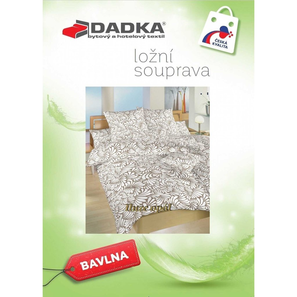 Moderná posteľná bielizeň Iluze opál vyniká svetlo hnedým (opálovým) základom s bielym abstraktným vzorom pripomínajúcim kvetinové či listové motívy. Skvele sa hodí do moderných interiérov. Vyrobené v Českej republike firmou DADKA VRACOV. Odporúčame kombinovať s plachtou vo farbe opál alebo bielej.
