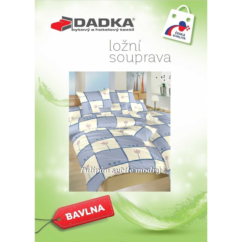 Štýlová posteľná bielizeň Tulipán svetlo modrý prináša do vašej spálne pokoj a sviežosť. Jemný kvetinový motív tulipánov v odtieňoch svetlo modrej a bielej pôsobí harmonicky a elegantne. Odporúčame kombinovať s plachtami vo farbe kráľovská modrá, svetlo modrá, púdrová, denim alebo banán. Vyrobené v Českej republike firmou DADKA VRACOV.