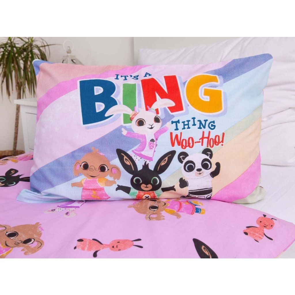Rozveseľte detskú postieľku s obliečkami Zajačik Bing It is a thing baby! Farebný motív obľúbených postavičiek z rozprávky Bing prinesie radosť a pohodlie každému malému fanúšikovi.