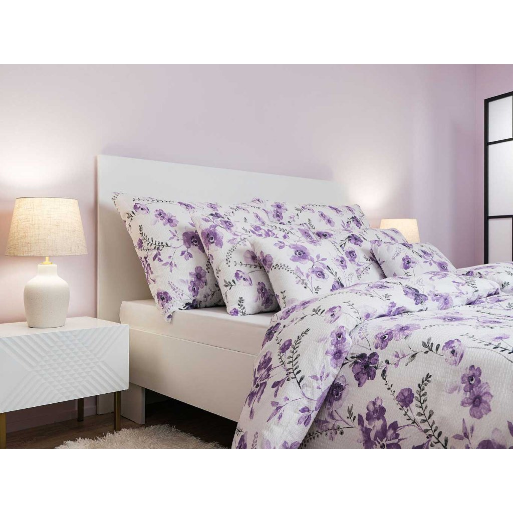 Obliečky Kvety fialové na bielom sú skvelým darčekom pre každého, kto ocení českú kvalitu, elegantný dizajn a pohodlie bez nutnosti žehlenia.