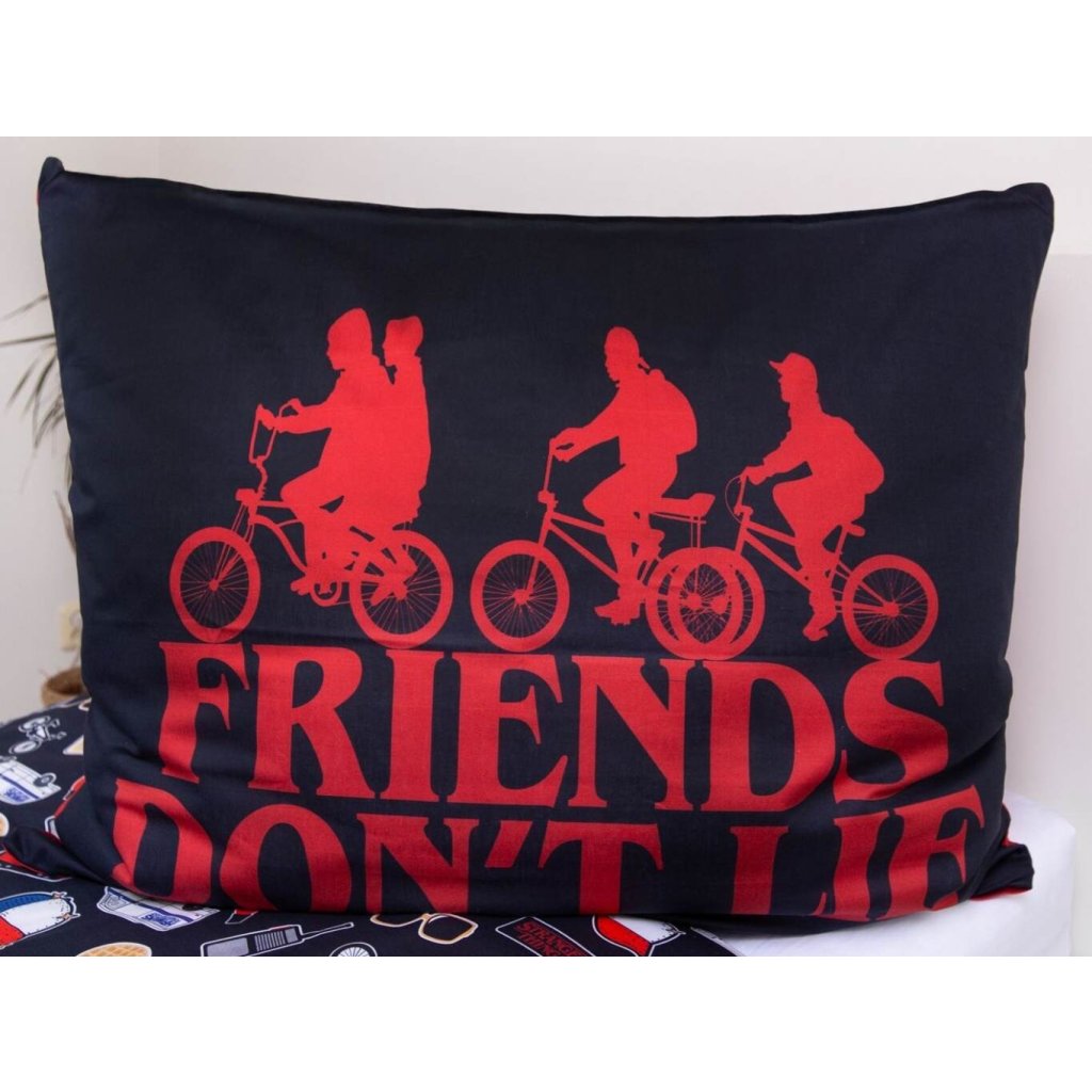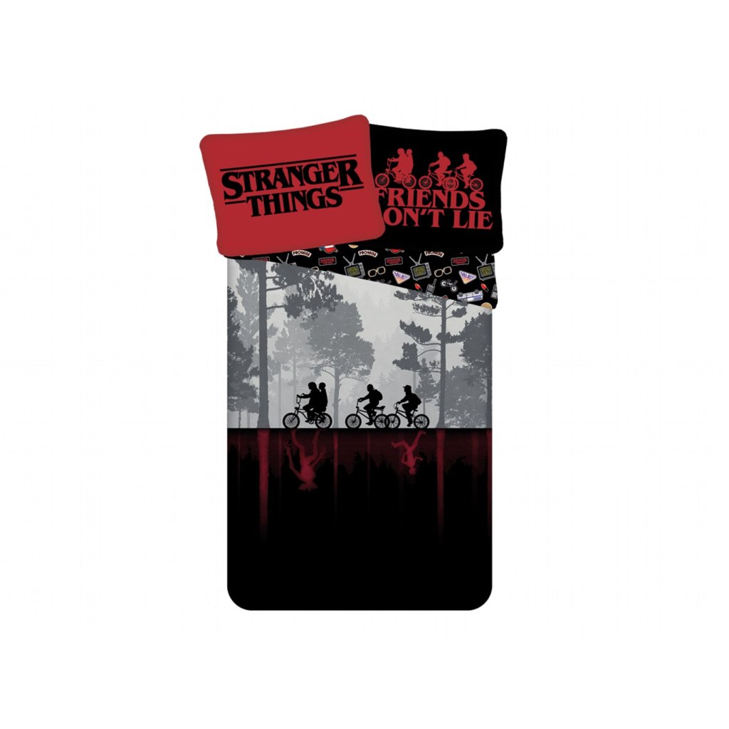 Vytvorte v izbičke napínavú atmosféru Hawkinsu s obliečkami Stranger Things Upside Down! Dizajn s ikonickými postavami na bicykloch a temným svetom Upside Down poteší každého fanúšika seriálu.