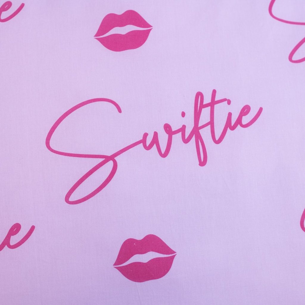 Vstúpte do sveta hudby s obliečkami Swiftie! Tento nádherný dizajn prináša osobu s polodlhými vlasmi čiastočne zakrytou blokmi na ružovom pozadí s nápisom 'Swiftie', ktoré rozžiaria každú izbu. Na prikrývke je podpis, ktorý dodáva obliečkam osobitý charakter.