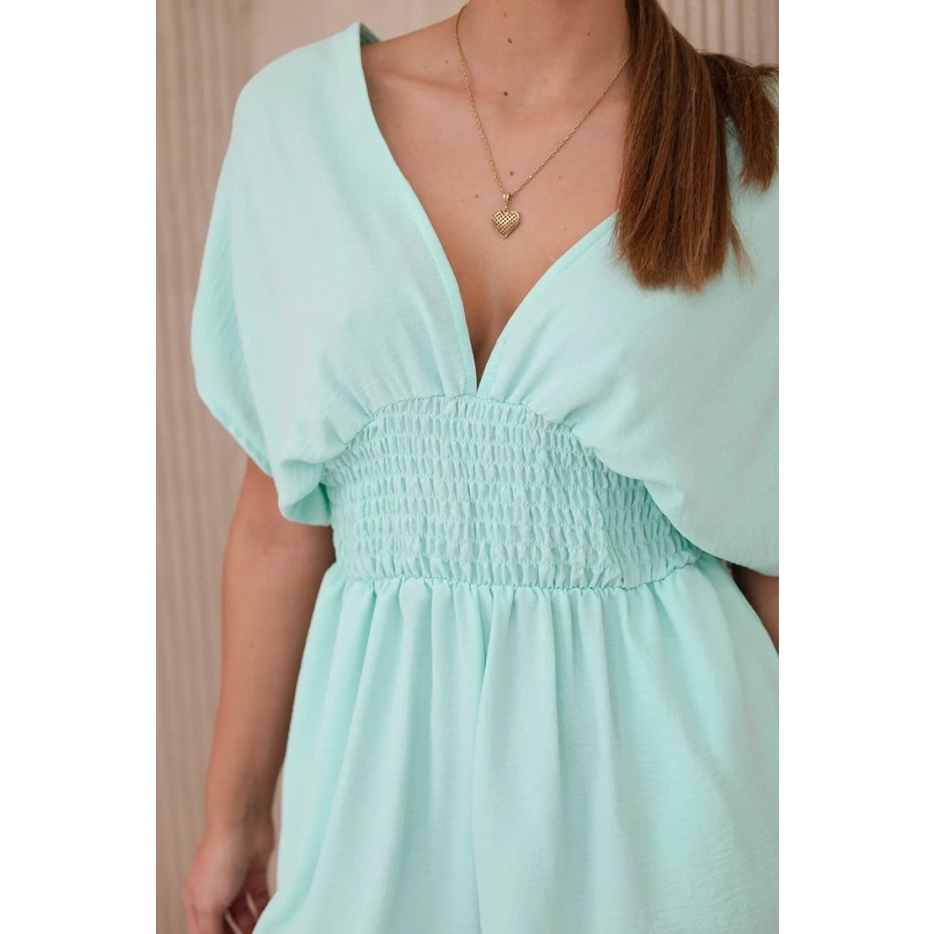 Kombinéza s elastickým pásom je jedinečný kúsok oblečenia, ktorý spája eleganciu a pohodlie. Riasený pás dodáva šatám ženskú siluetu, zvýrazňuje pás a dodáva im jemný šarm. Kombinéza je vyrobená z kvalitných materiálov a zaručuje pohodlie a voľnosť pohybu. Tento overal je ideálny na rôzne príležitosti, od formálnych stretnutí až po neformálne výlety, a vďaka nemu budete vyzerať štýlovo a budete sa cítiť sebaisto v každej situácii.