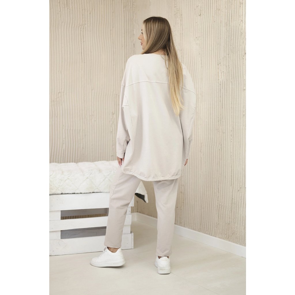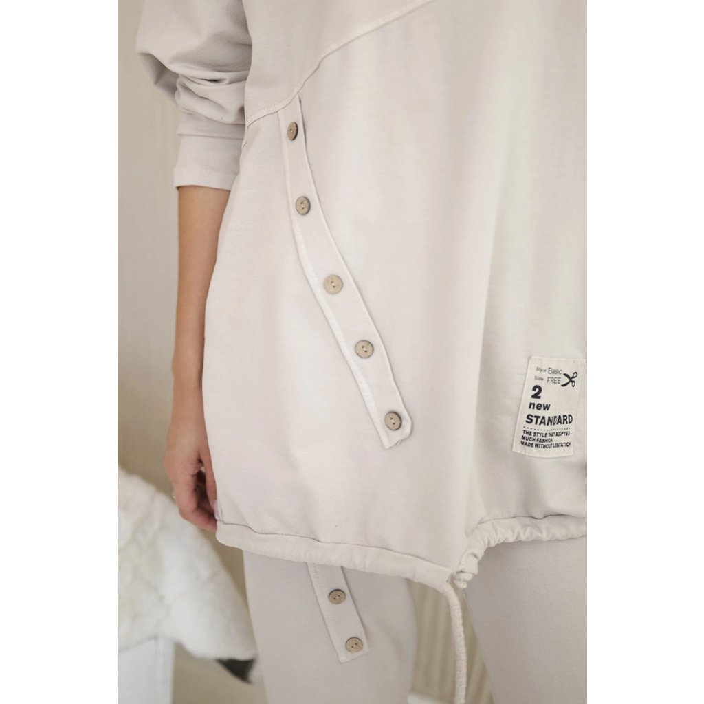 Bavlnená súprava nadrozmernej veľkosti pozostávajúca z mikiny a nohavíc je ideálnou voľbou pre tých, ktorí ocenia pohodlie a štýl. Voľne padnúca mikina má v spodnej časti ozdobné zaväzovanie, ktoré jej dodáva originálny charakter a umožňuje upraviť strih. Nohavice s vreckami zaručujú pohodlie a praktickosť, ideálne na každodenné nosenie. Táto súprava je vyrobená z vysoko kvalitnej bavlny a poskytuje príjemný pocit na pokožke a vynikajúcu priedušnosť. Je ideálna na uvoľnené víkendy, prechádzky alebo stretnutia s priateľmi a ponúka voľnosť pohybu a módny vzhľad v jednom.