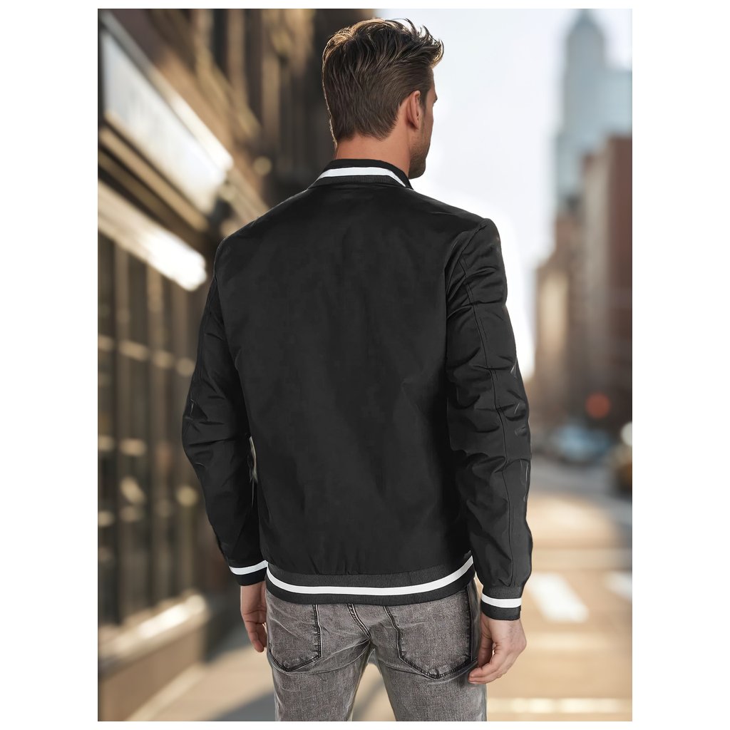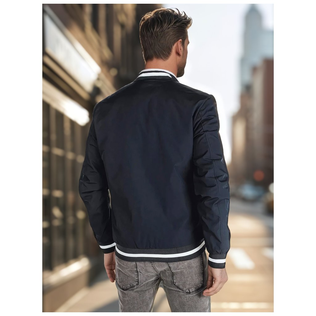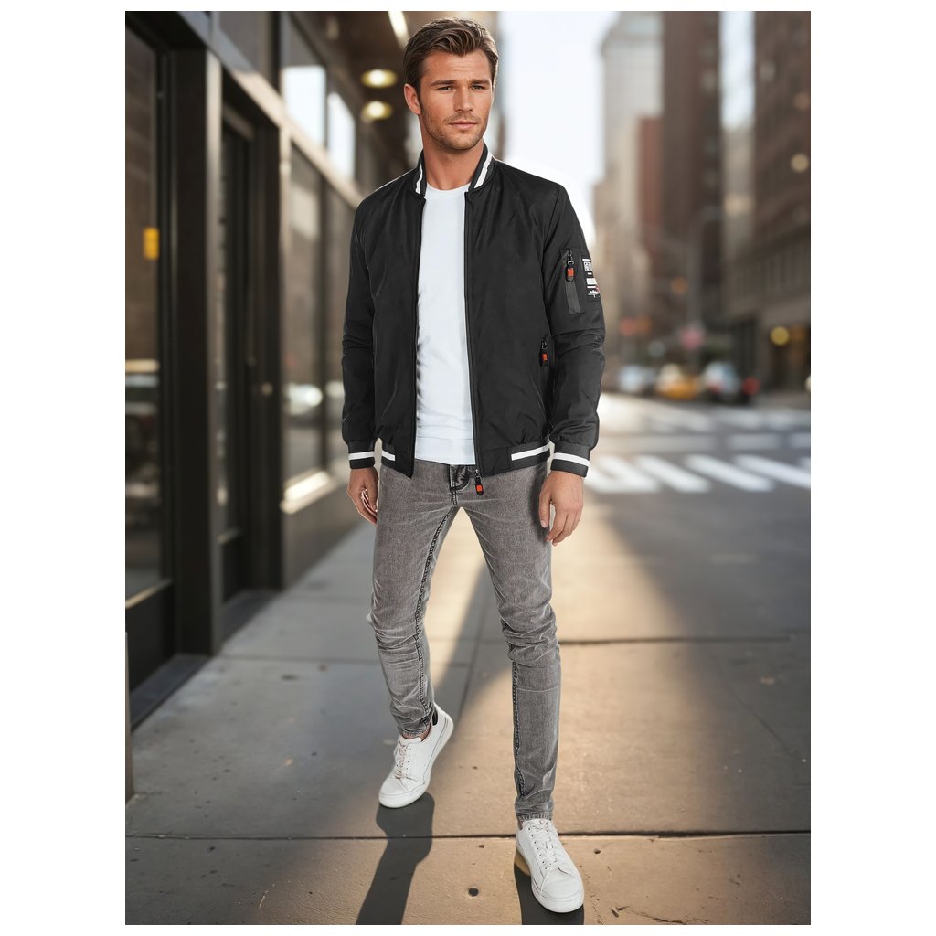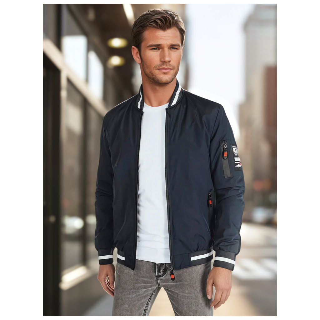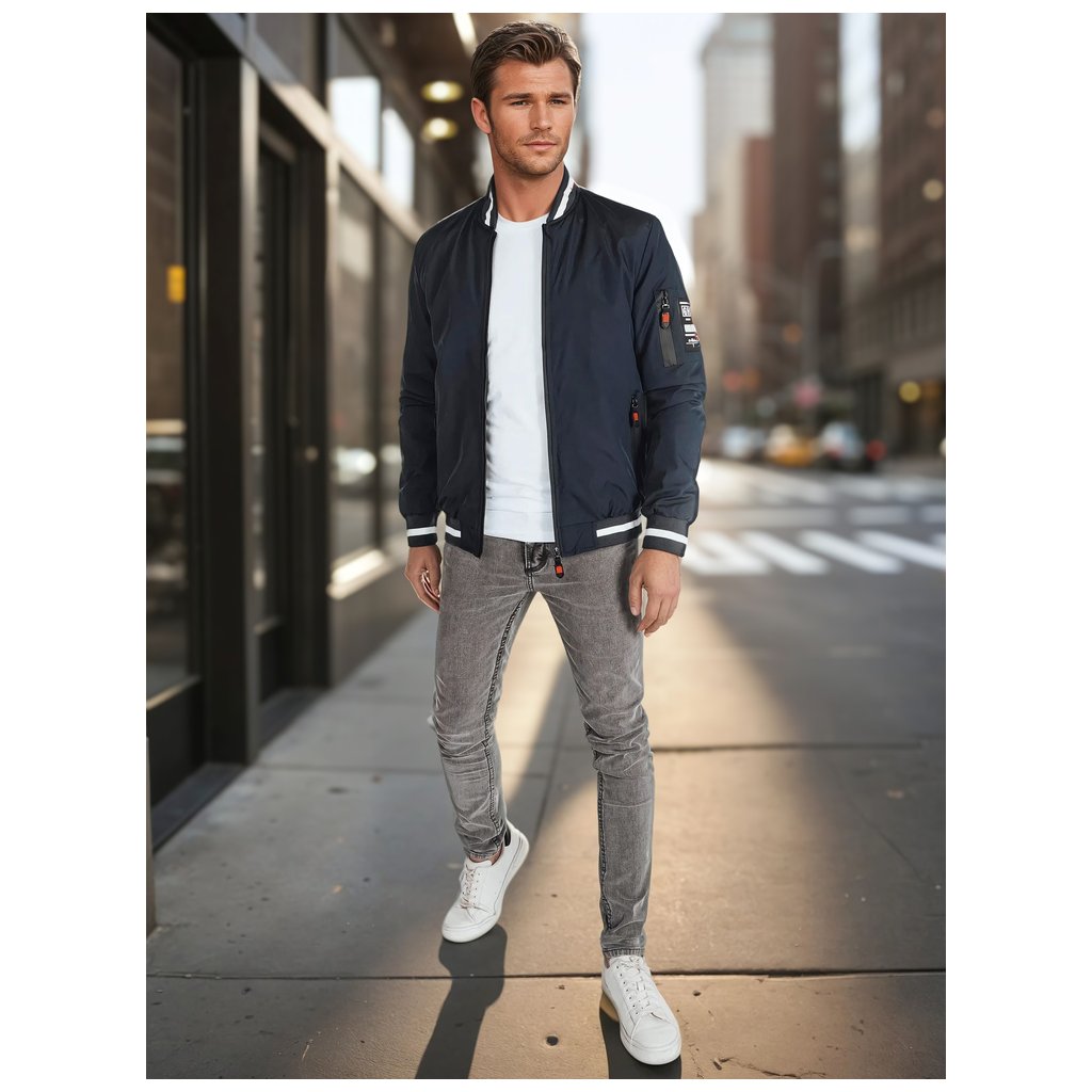 Ľahká pánska bomber bunda, ideálna pre prechodné obdobia. Tento model má zapínanie na zips po celej dĺžke, nemá kapucňu a má elastické manžety na rukávoch a leme. Má tri vonkajšie vrecká a jedno vnútorné vrecko. Decentné polstrovanie zvyšuje pohodlie. Ideálna pre mestský štýl.