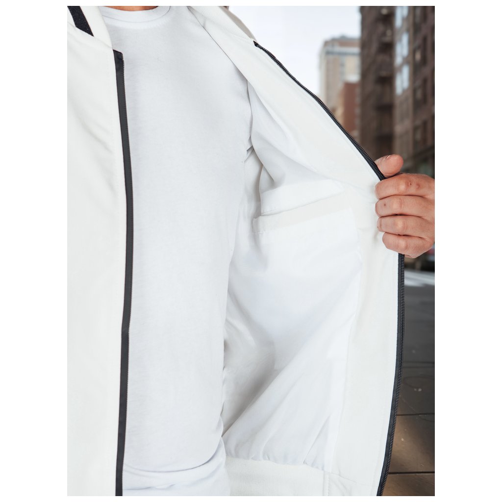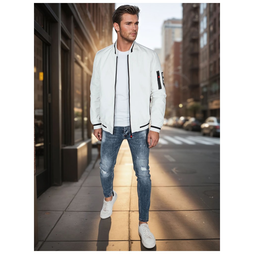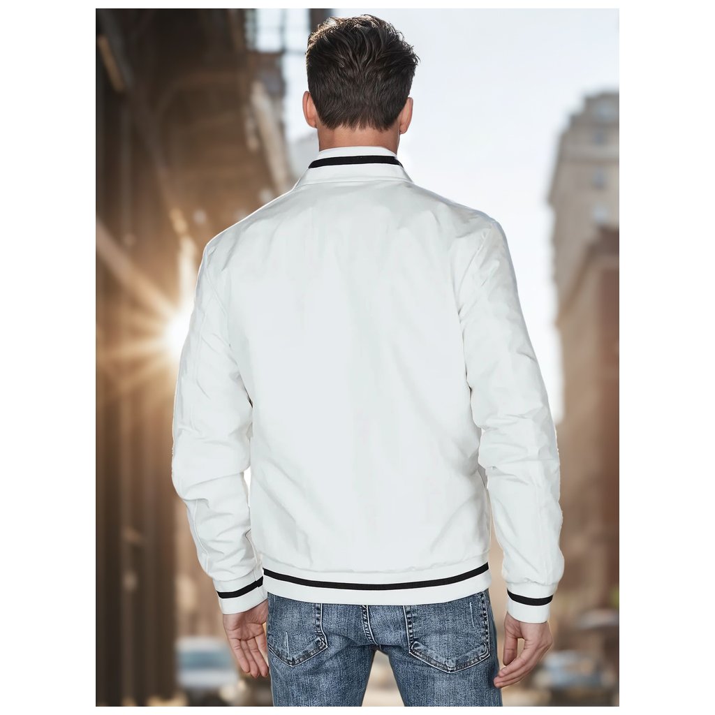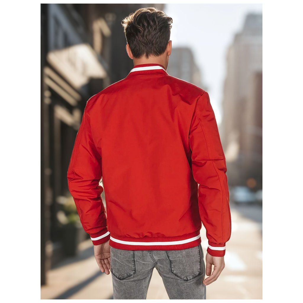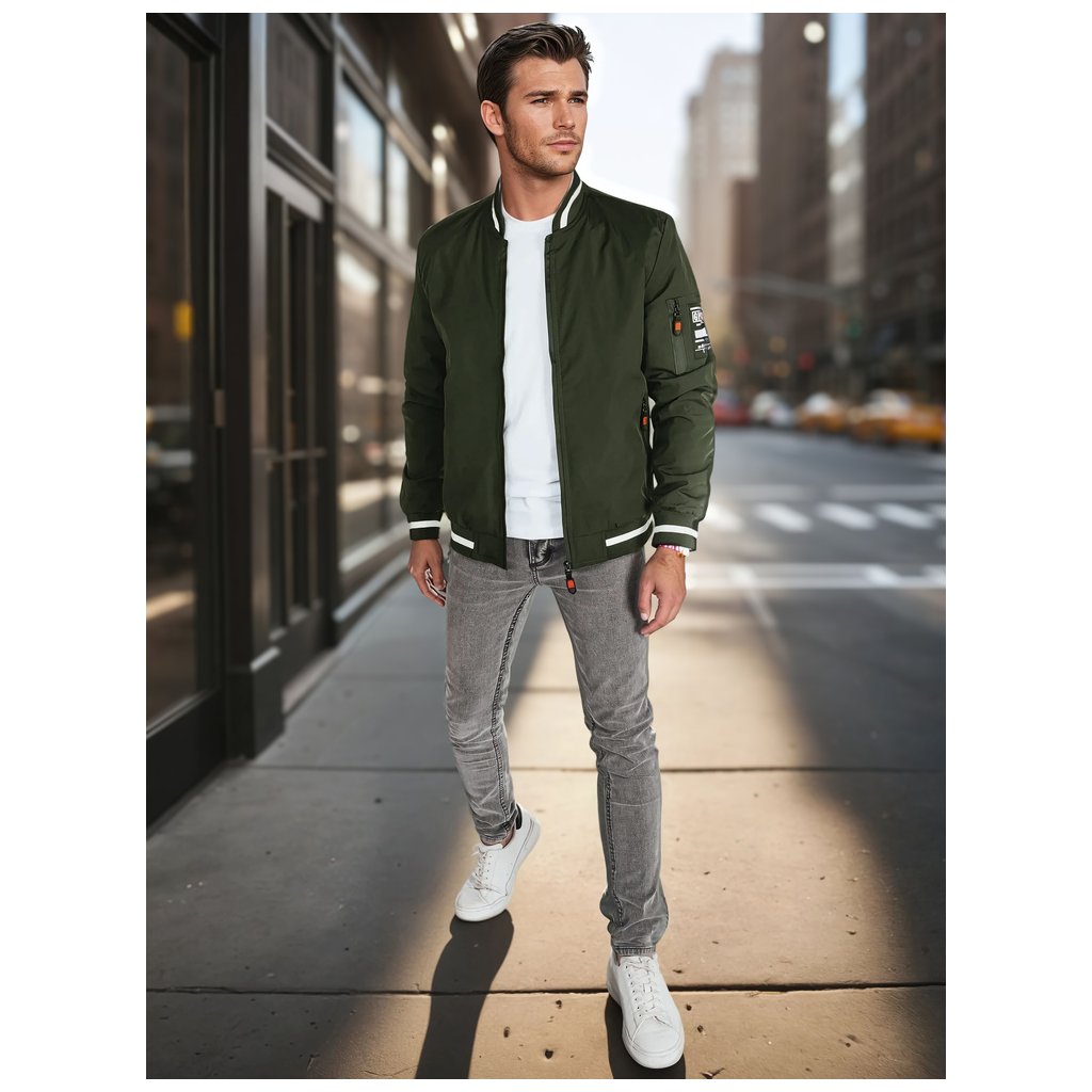 Ľahká pánska bomber bunda, ideálna pre prechodné obdobia. Tento model má zapínanie na zips po celej dĺžke, nemá kapucňu a má elastické manžety na rukávoch a leme. Má tri vonkajšie vrecká a jedno vnútorné vrecko. Decentné polstrovanie zvyšuje pohodlie. Ideálna pre mestský štýl.