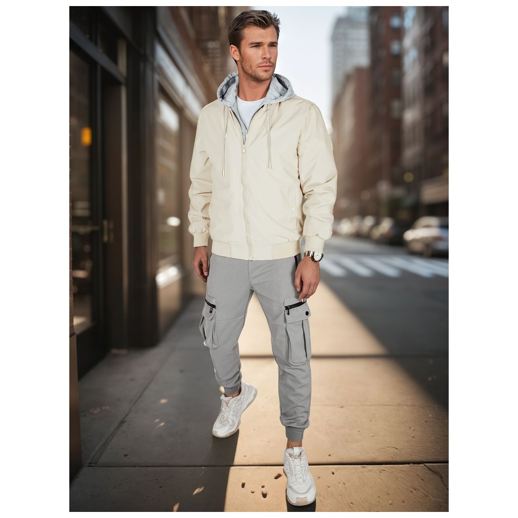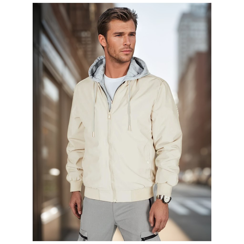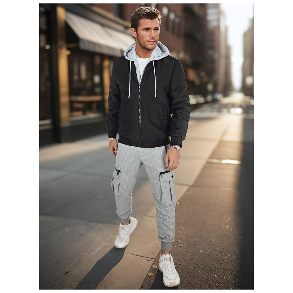 Pánska prechodná bunda, ktorá kombinuje pohodlie a mestský štýl. Tento model sa vyznačuje zapínaním na zips po celej dĺžke s vsadkou v štýle mikiny. Má dve vonkajšie vrecká a jedno vnútorné vrecko. Rebrované manžety a lem zaisťujú priliehavé nosenie. Ideálna pre prechodné obdobie.