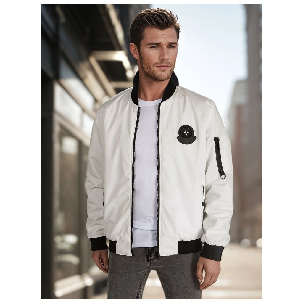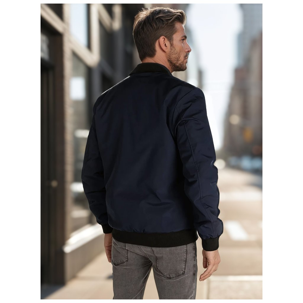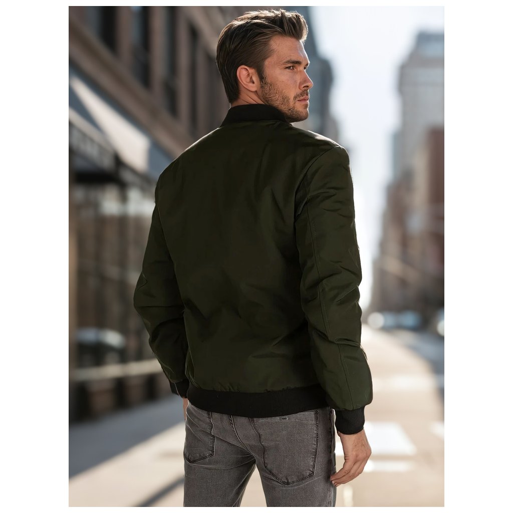 Táto pánska bomber bunda je dokonalou kombináciou štýlu a funkčnosti. Jej klasický dizajn je doplnený praktickými vreckami a elastickými manžetami. Materiál poskytuje pohodlie a voľnosť pohybu a minimalistický dizajn z nej robí perfektnú kombináciu s džínsami aj chino nohavicami. Všestranná voľba na každodenné nosenie.