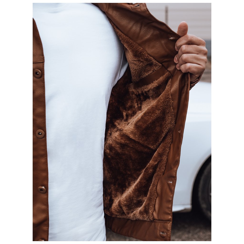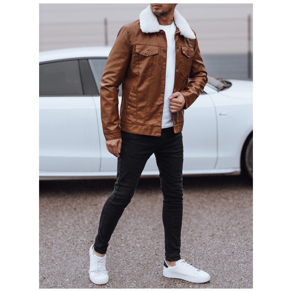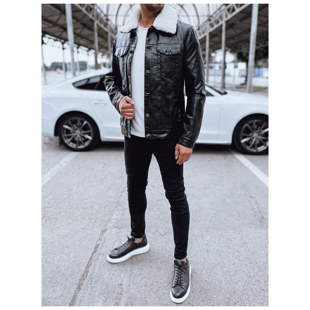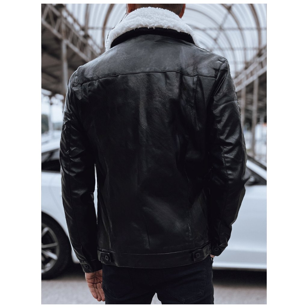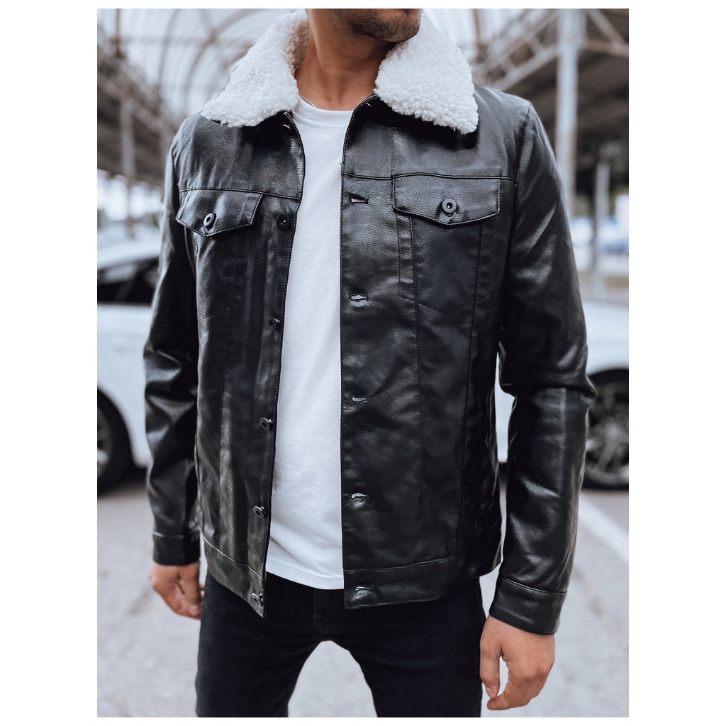 Čierna pánska kožená bunda. Vyrobené z umelej kože. Zapínanie na gombíky. Podšívka z kožušiny. Odnímateľný golier z ovčej kože. Bočné a predné vrecká. Jedno vnútorné vrecko. Vonkajší materiál: 70 % polyuretán, 30 % polyester. Podšívka: 100 % polyester.