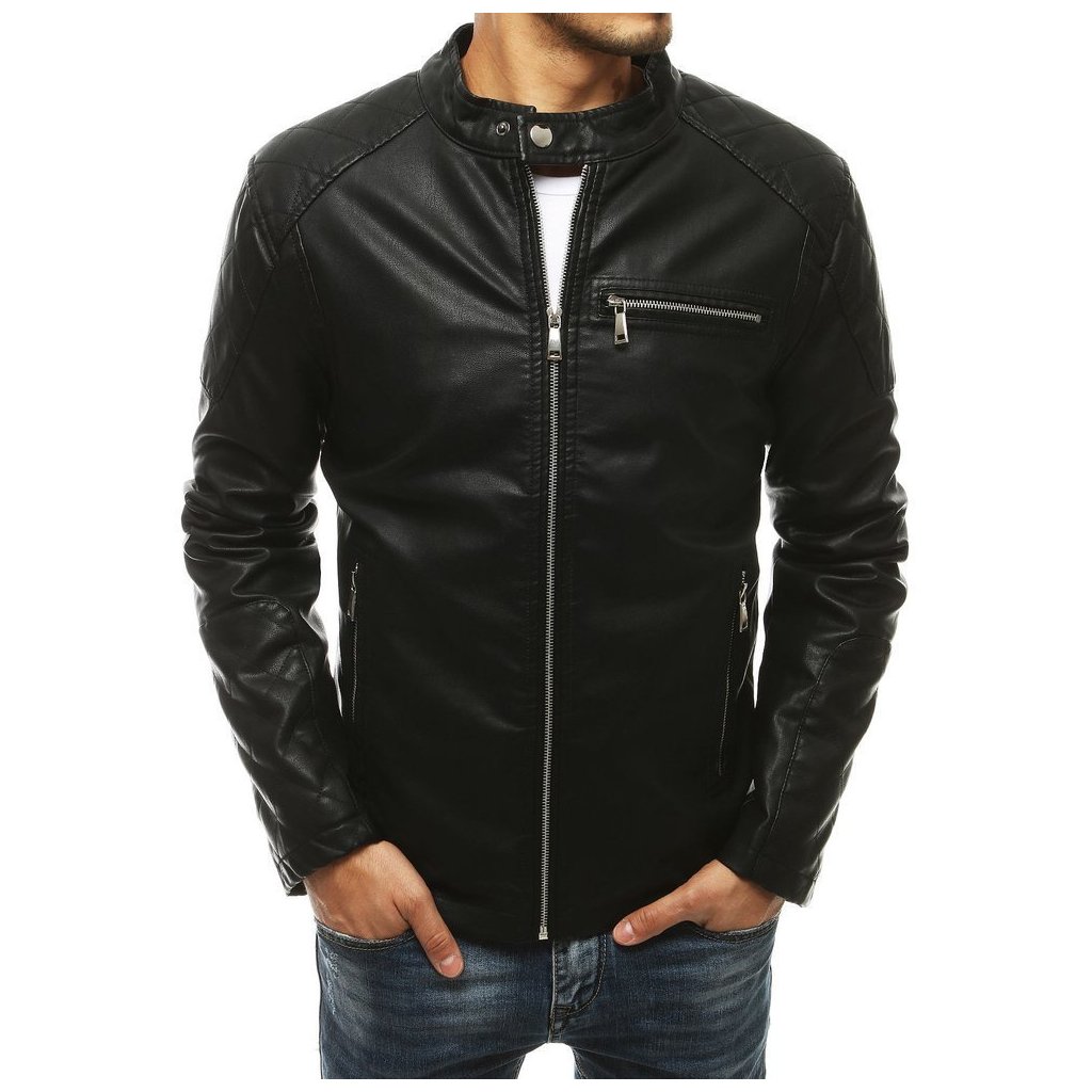 Pánska bunda kožená čierna Dstreet TX3463 - výpredaj