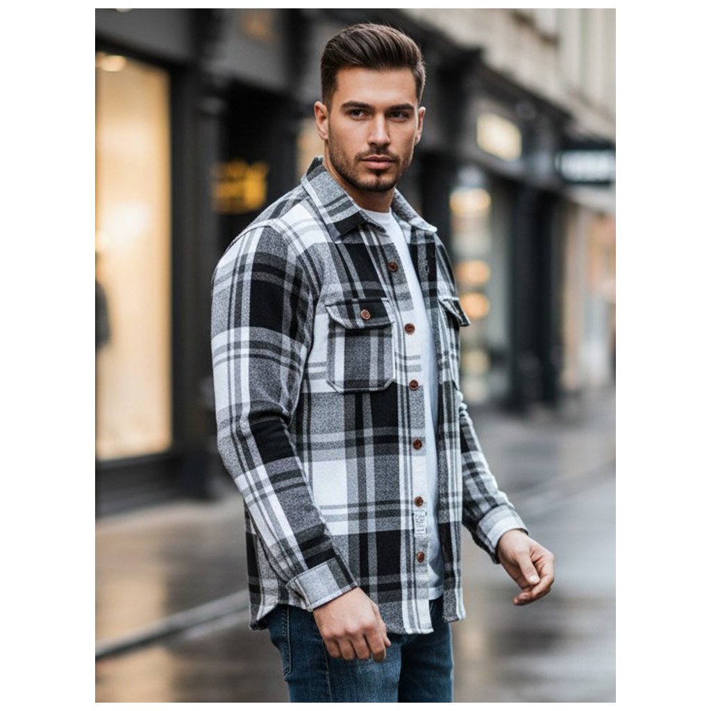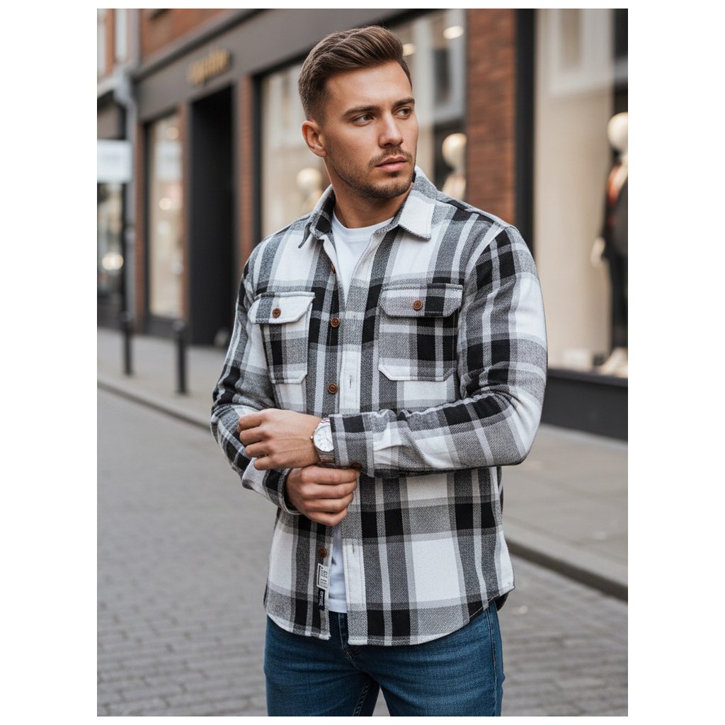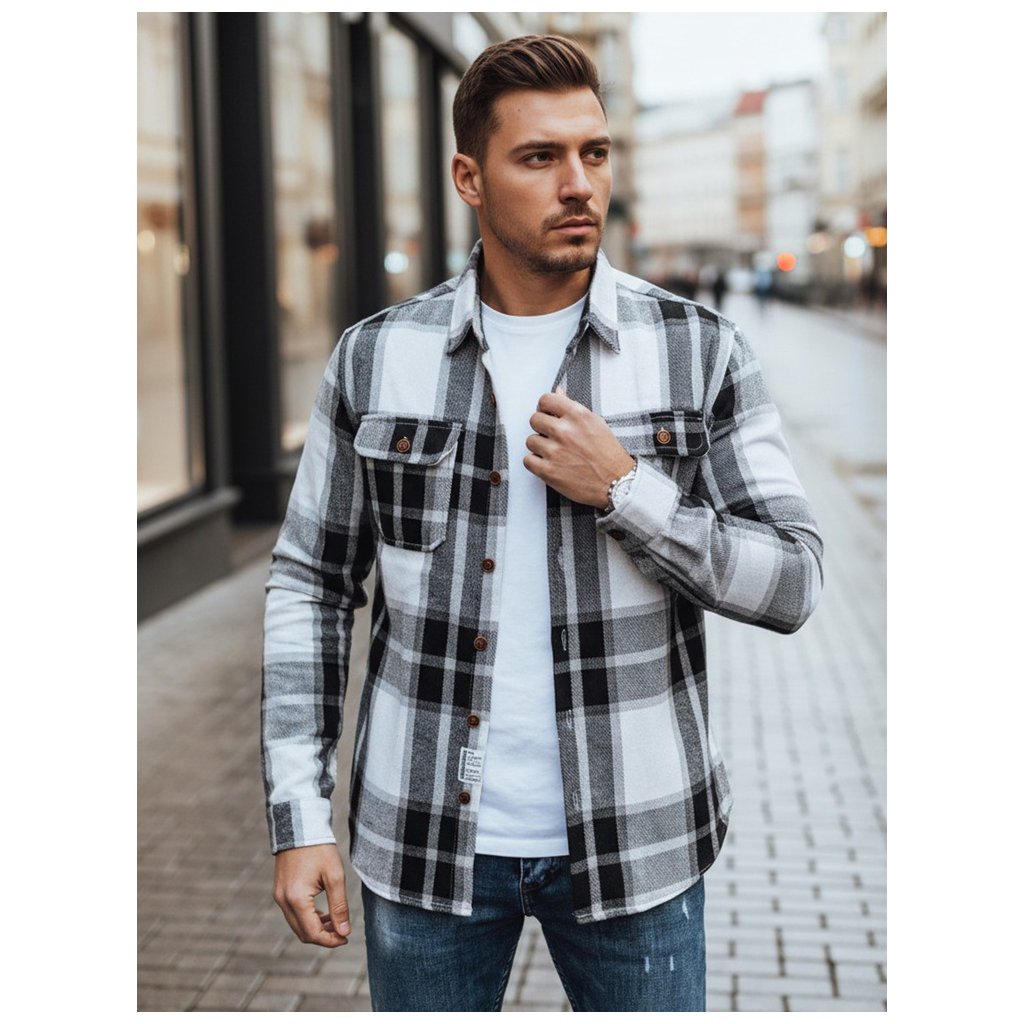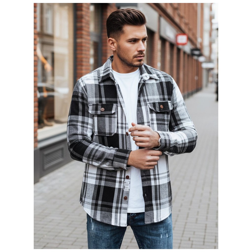 Pánska flanelová košeľa DX2673 čierna a biela