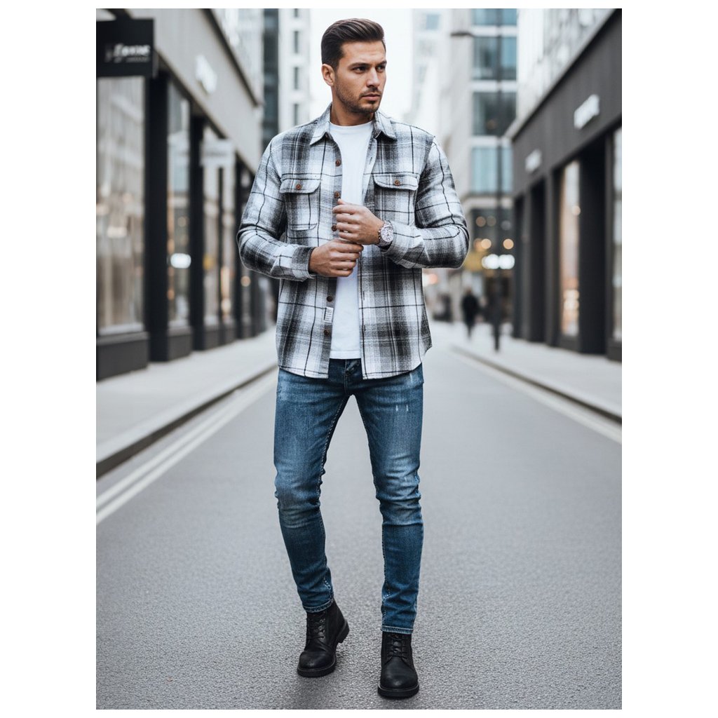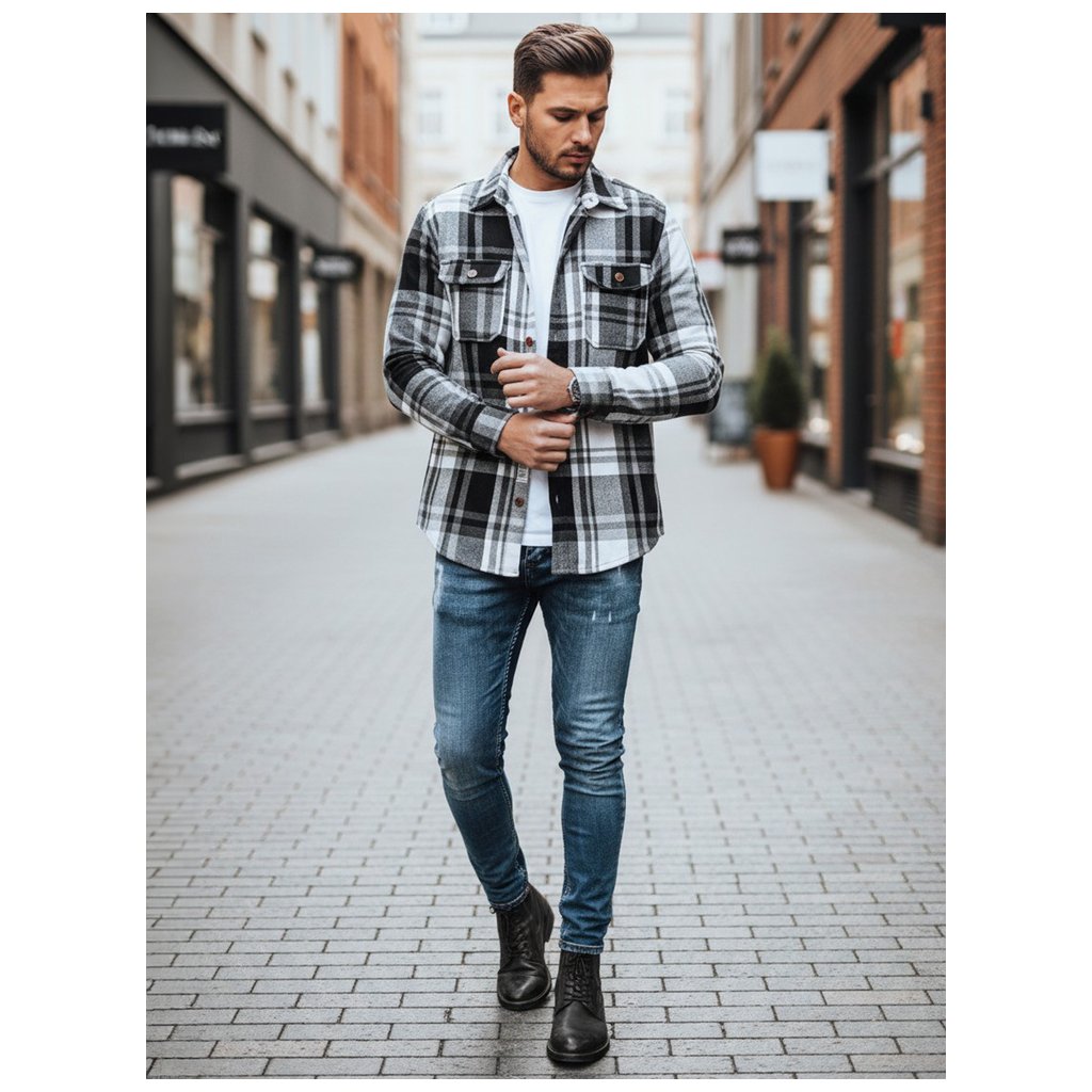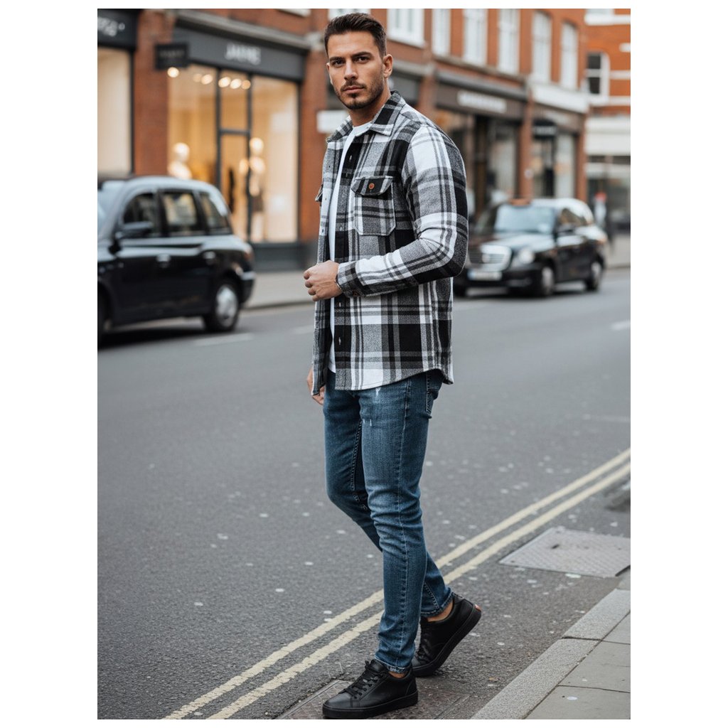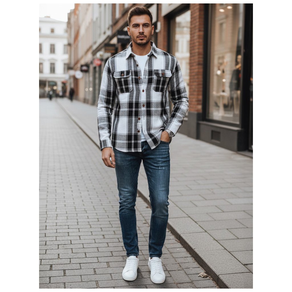 Pánska flanelová košeľa DX2673 čierna a biela