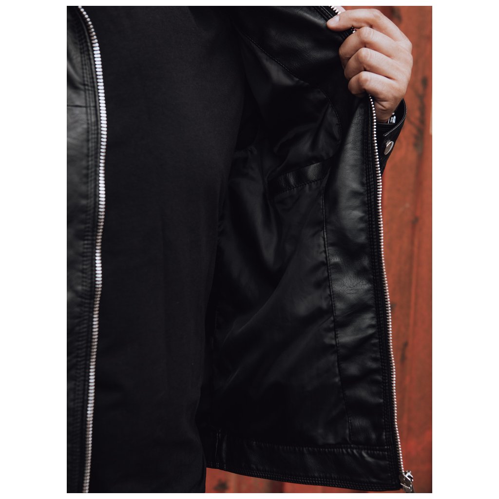 - Pánska kožená bunda. Vyrobené z umelej kože. Zapínanie na zips. Prešívaná podšívka. Štyri vonkajšie vrecká na zips. Jedno vnútorné vrecko. Zloženie: 100% polyester.
