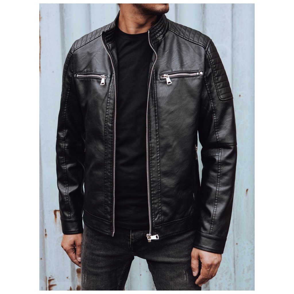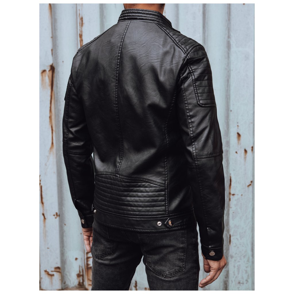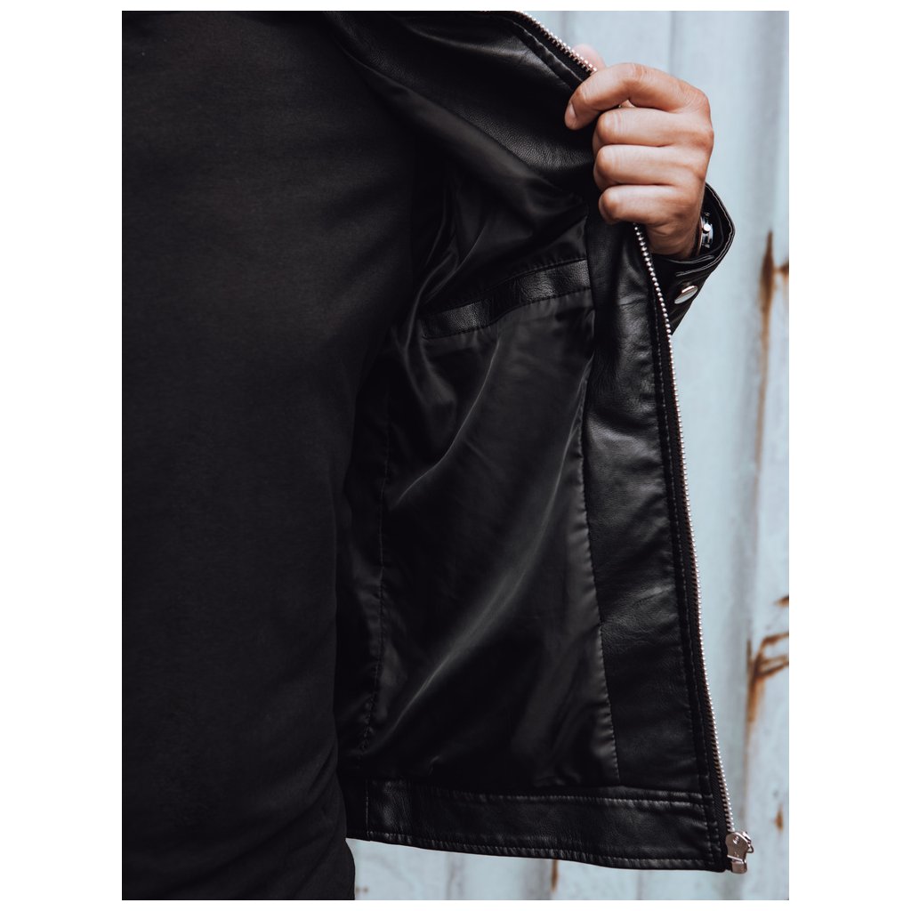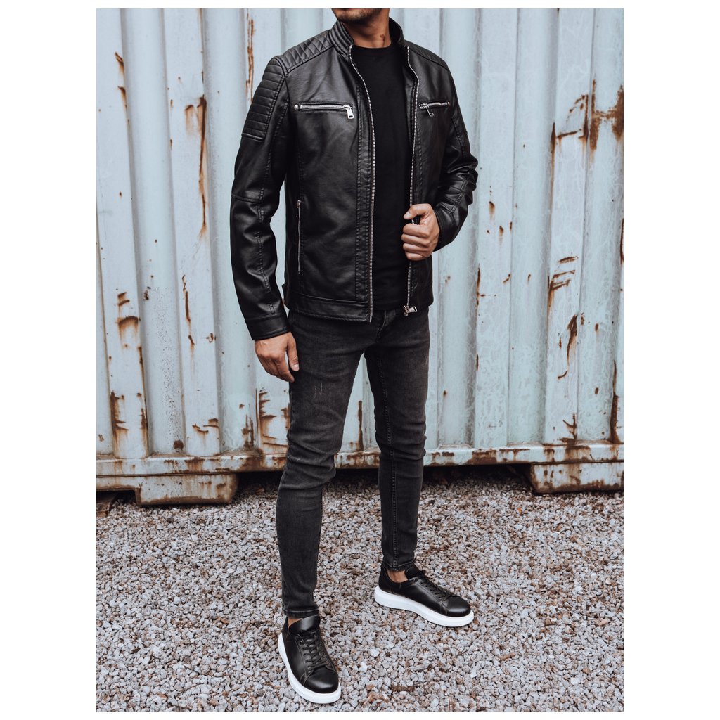 Pánska kožená bunda s prackami čierna Dstreet TX4731