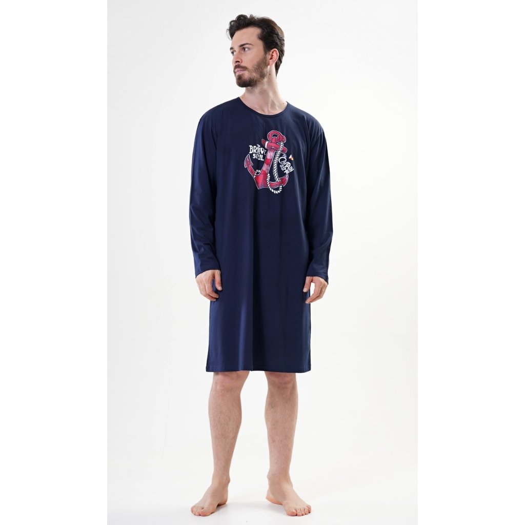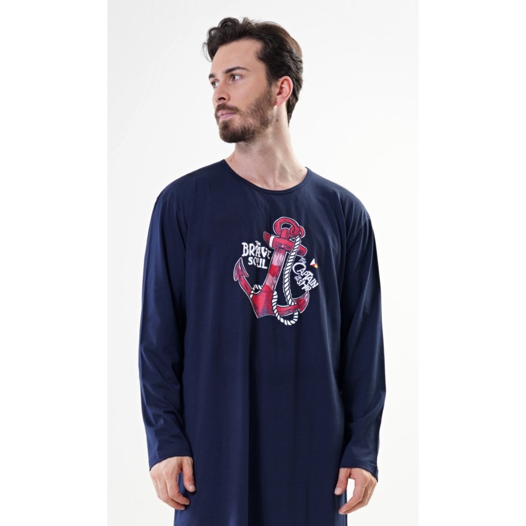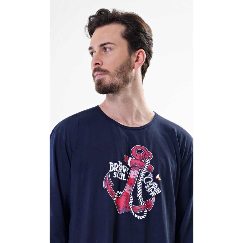 Pánska bavlnená nočná košeľa s dlhým rukávom Anchor. Táto pánska nočná košeľa s dlhým rukávom má na hrudi výrazný obrázok kotvy. Použitý bavlnený materiál je príjemný a pružný na dotyk.