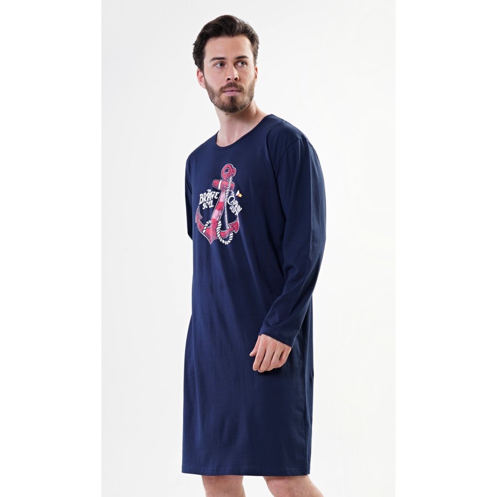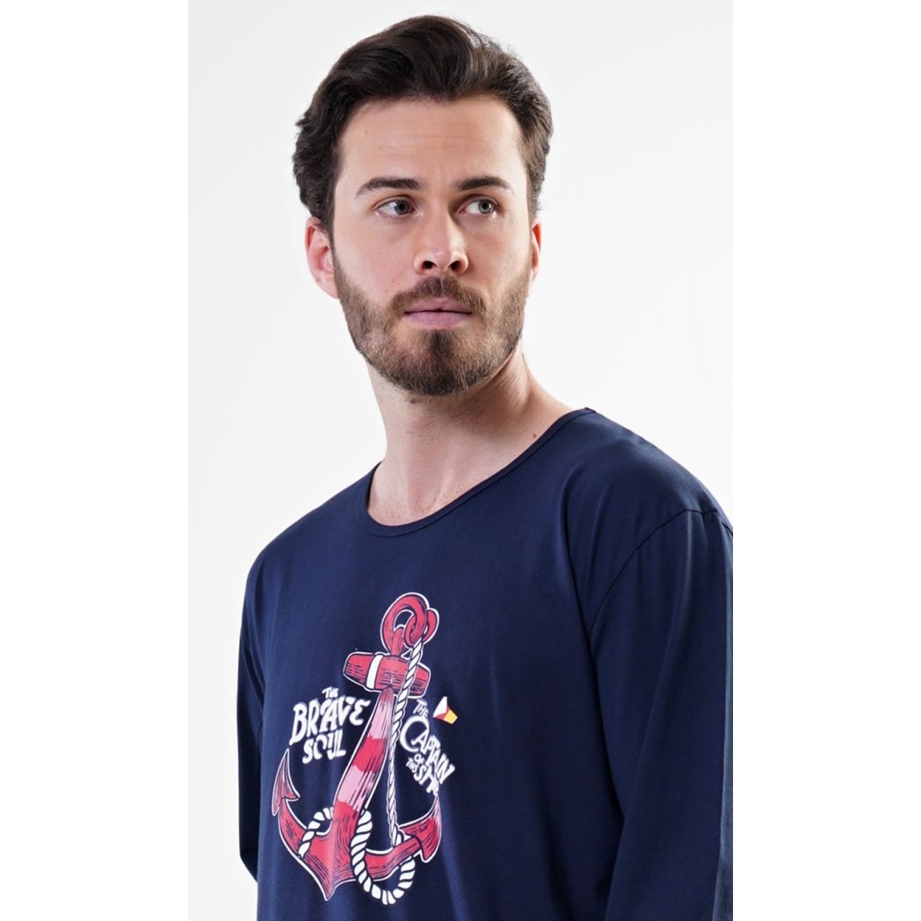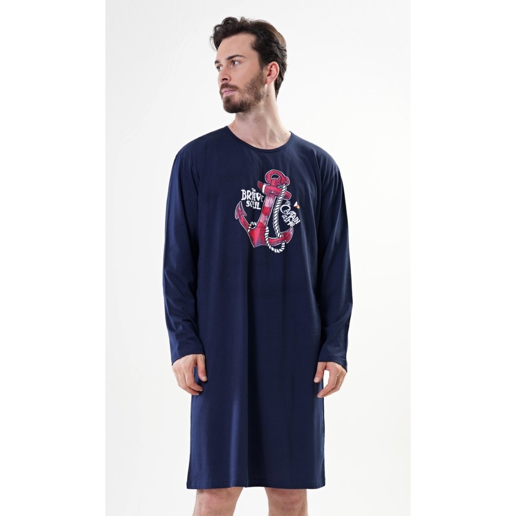 Pánska bavlnená nočná košeľa s dlhým rukávom Anchor. Táto pánska nočná košeľa s dlhým rukávom má na hrudi výrazný obrázok kotvy. Použitý bavlnený materiál je príjemný a pružný na dotyk.