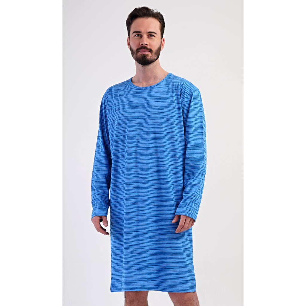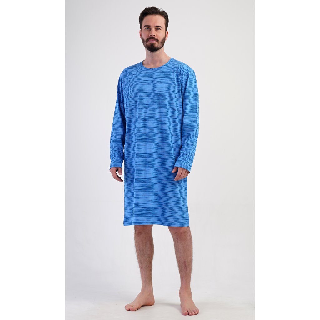 Pánska bavlnená nočná košeľa s dlhým rukávom Sebastian. Nočná košeľa s okrúhlym výstrihom a dĺžkou po kolená je zdobená jemnými prúžkami. Je to vhodný darček pre všetkých milovníkov pohodlného spánku. Materiál zo 100 % bavlny je príjemný a hebký na dotyk.