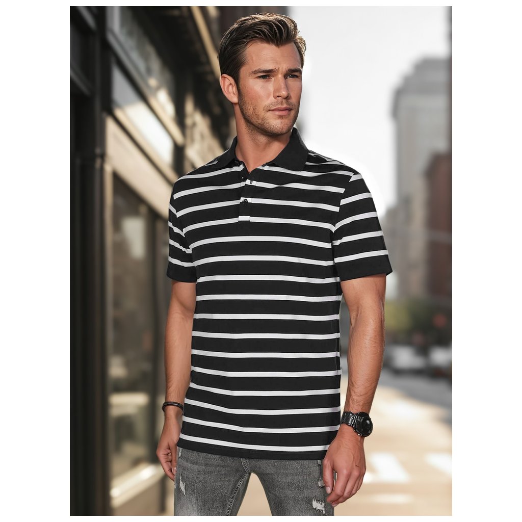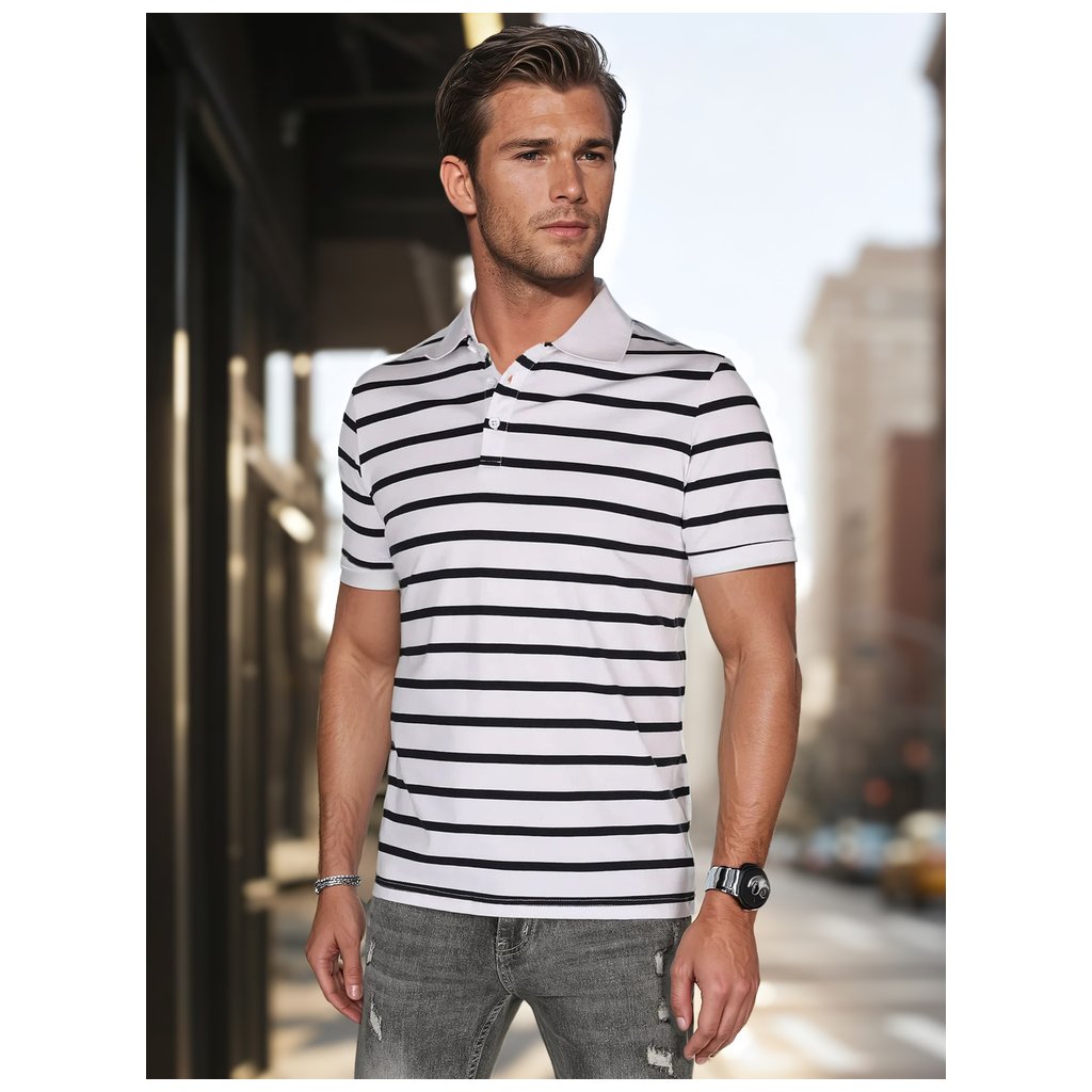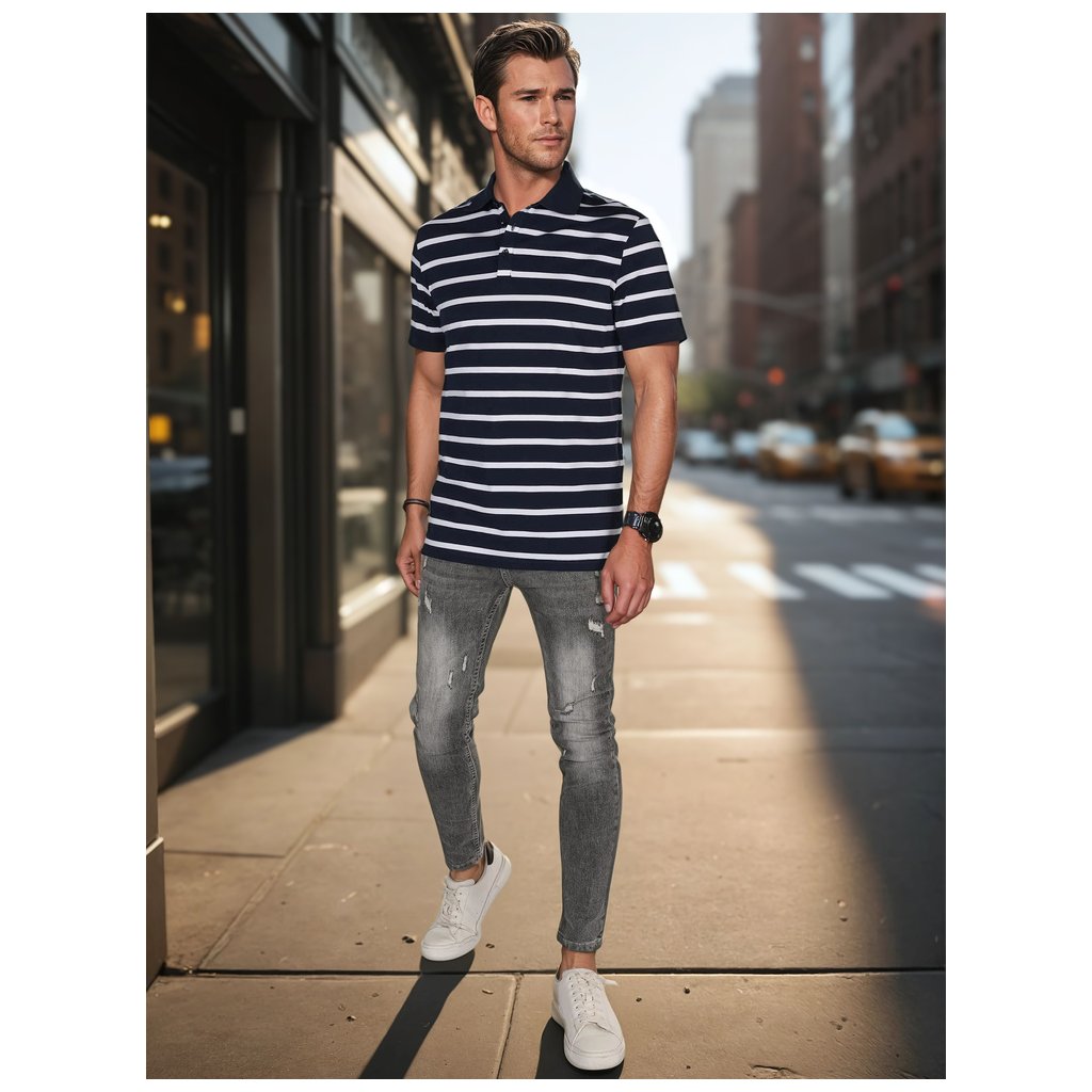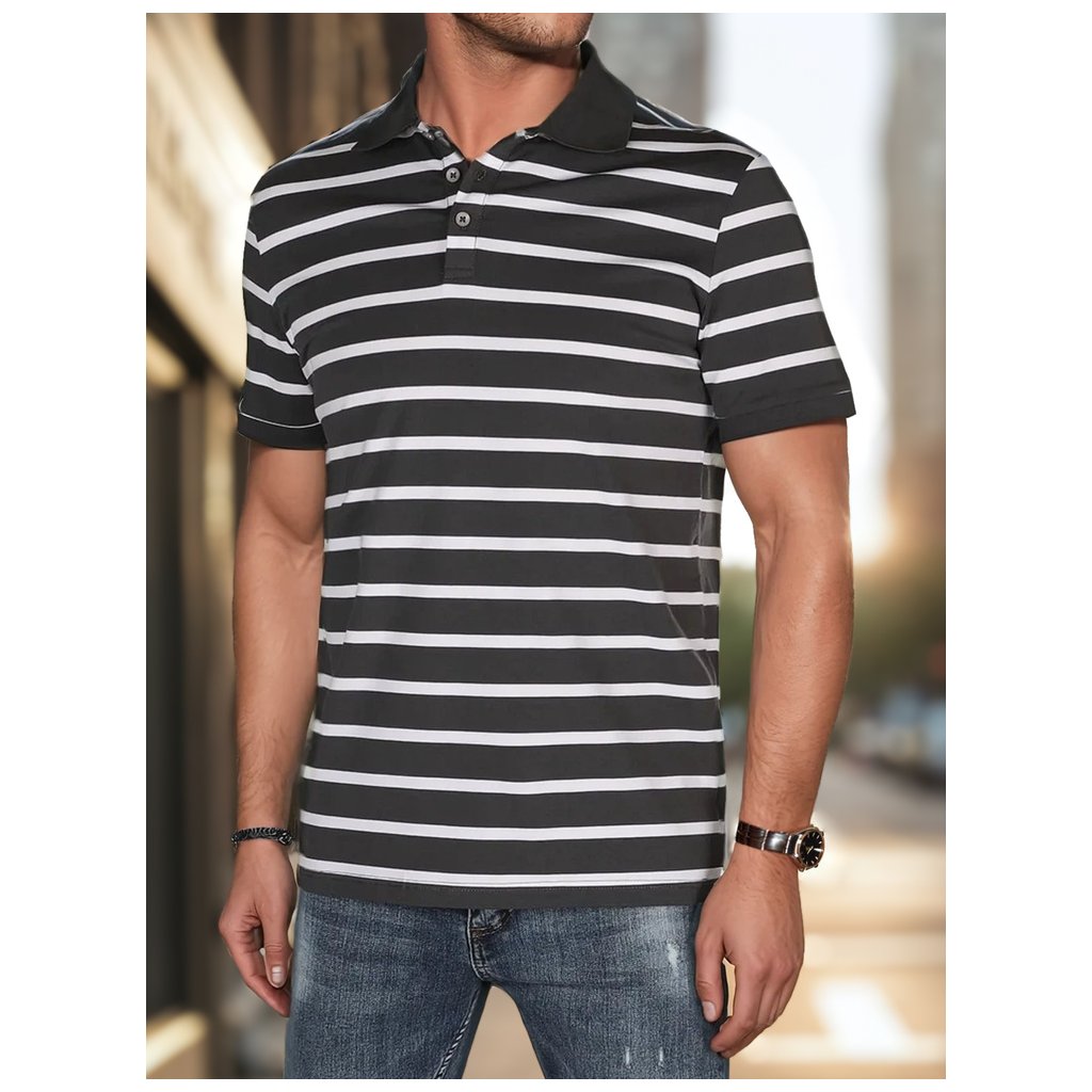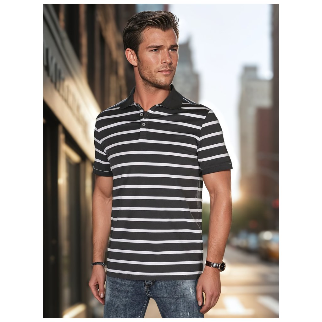 Toto pánske polo tričko sa vyznačuje nadčasovým dizajnom a je vyrobené z mäkkej a priedušnej látky, ideálne pre teplejšie dni. Klasický strih zaisťuje pohodlie, zatiaľ čo vodorovné pruhy a zapínanie na gombíky dodávajú moderný nádych. Ideálne na každodenné nosenie aj mestské outfity. Ideálne pre jarné obdobie.
