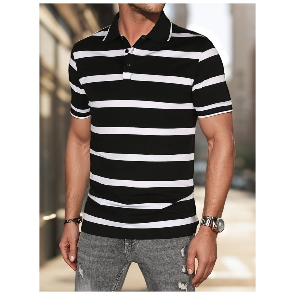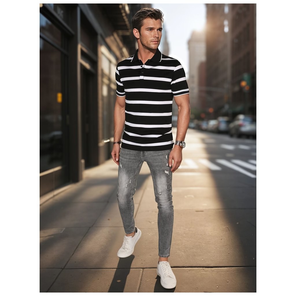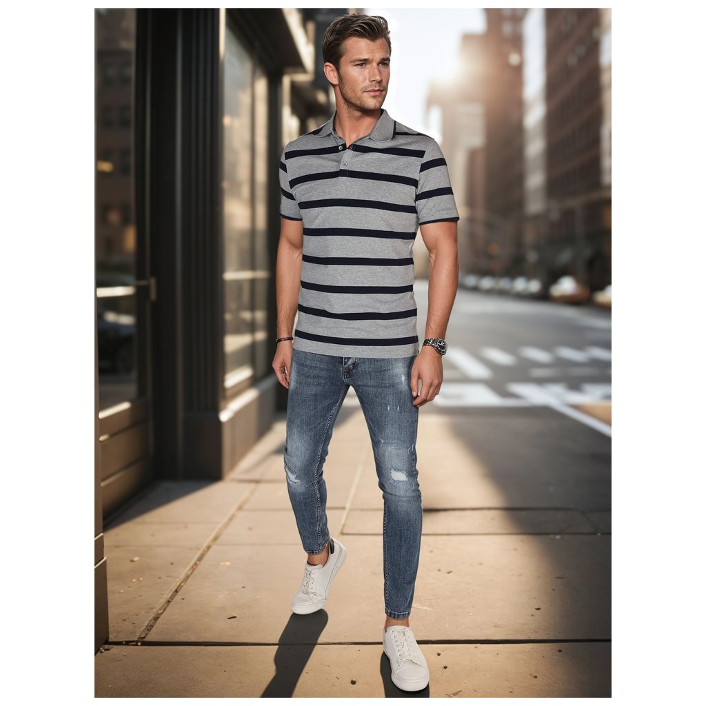 Toto pánske polo tričko s nadčasovými pruhmi je dokonalou kombináciou štýlu a pohodlia. Vďaka klasickému strihu a golieriku na gombíky je tento model ideálny na každodenné nosenie. Mäkká tkanina zaisťuje pohodlie a všestranný vzor sa skvele hodí k džínsom a teniskám.