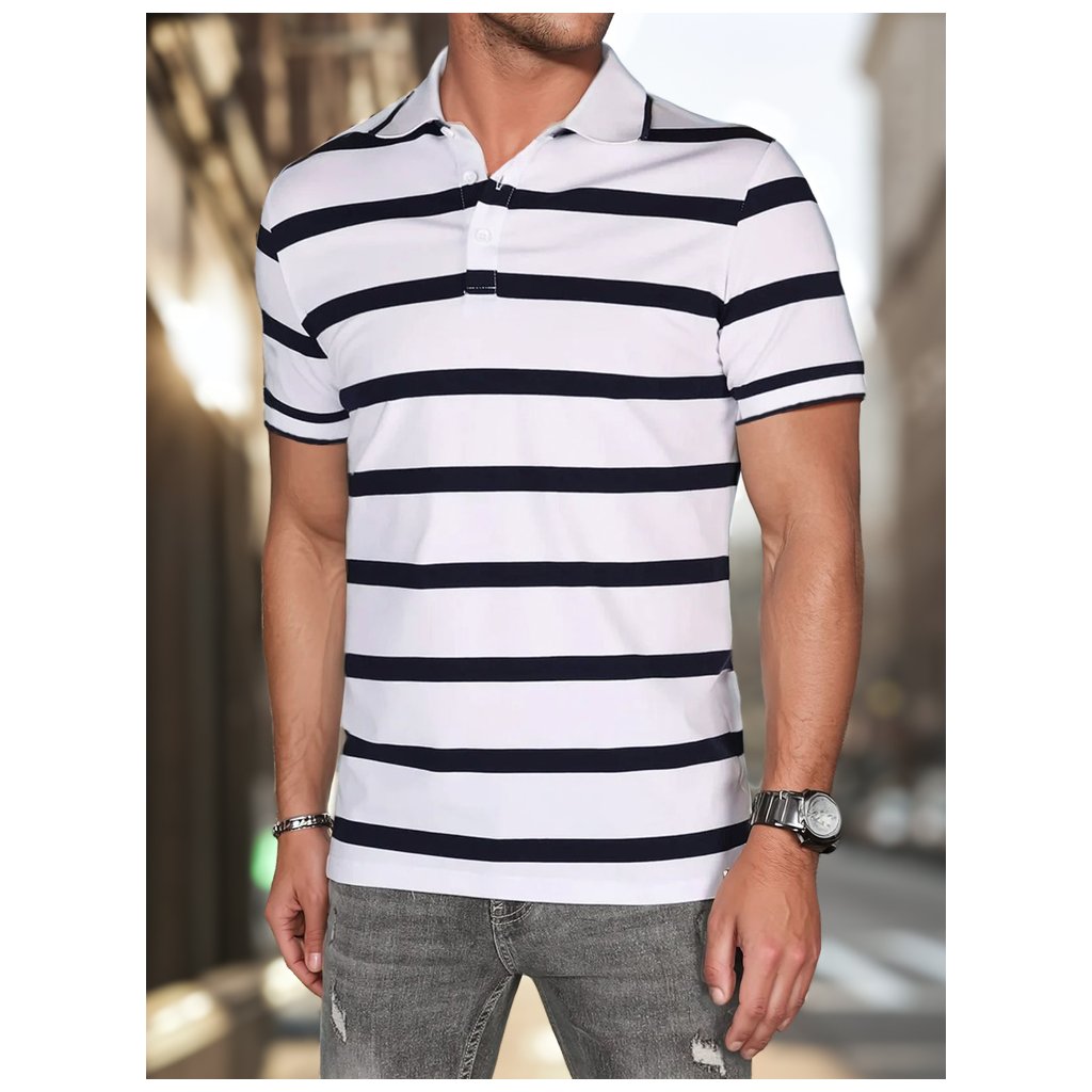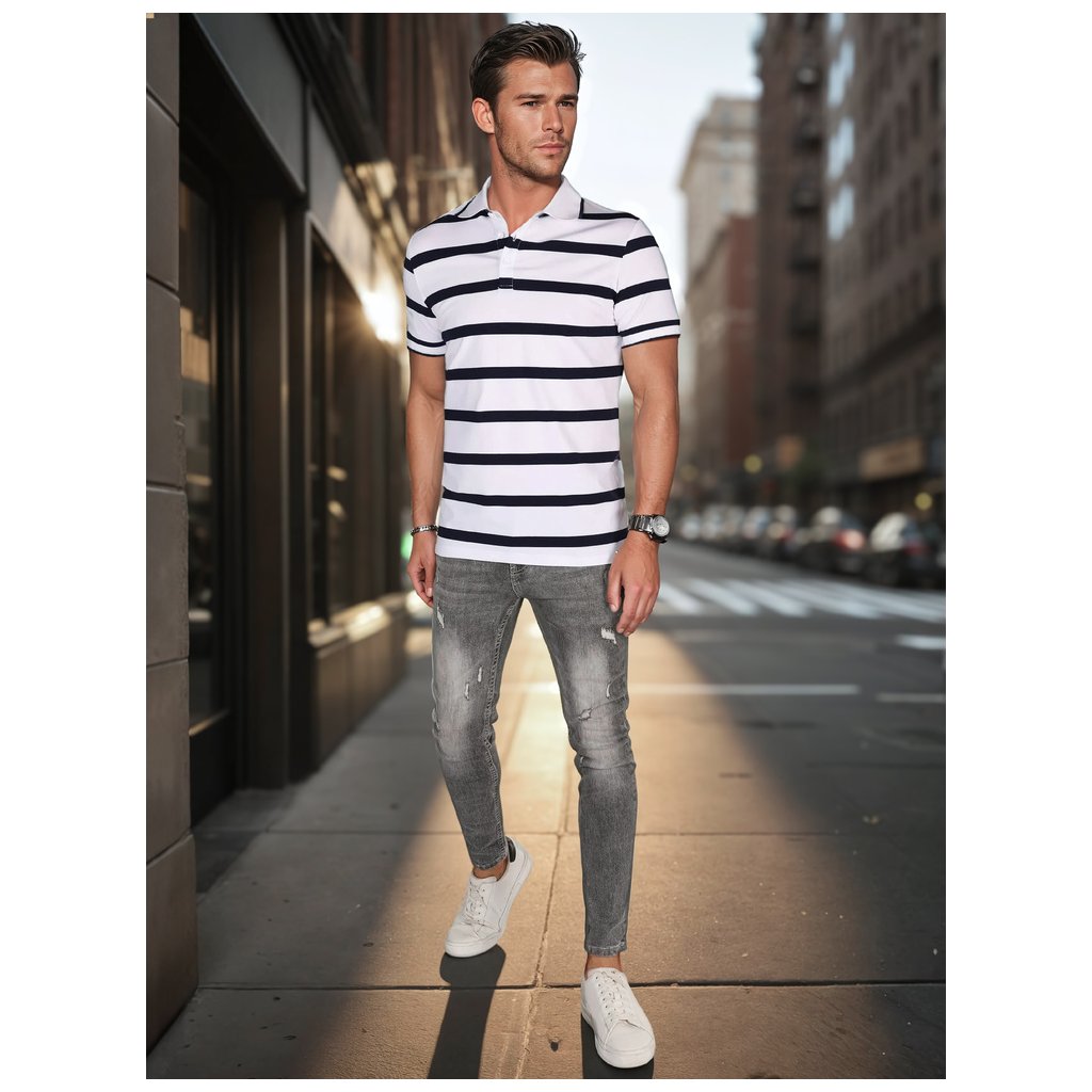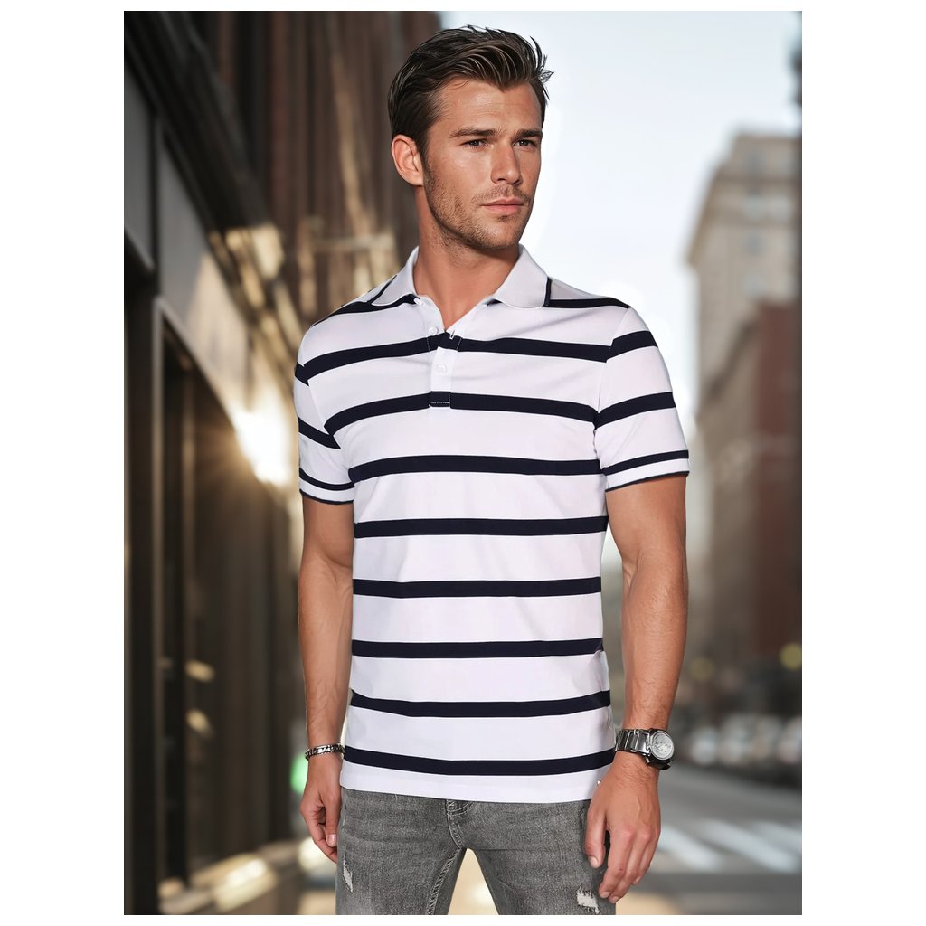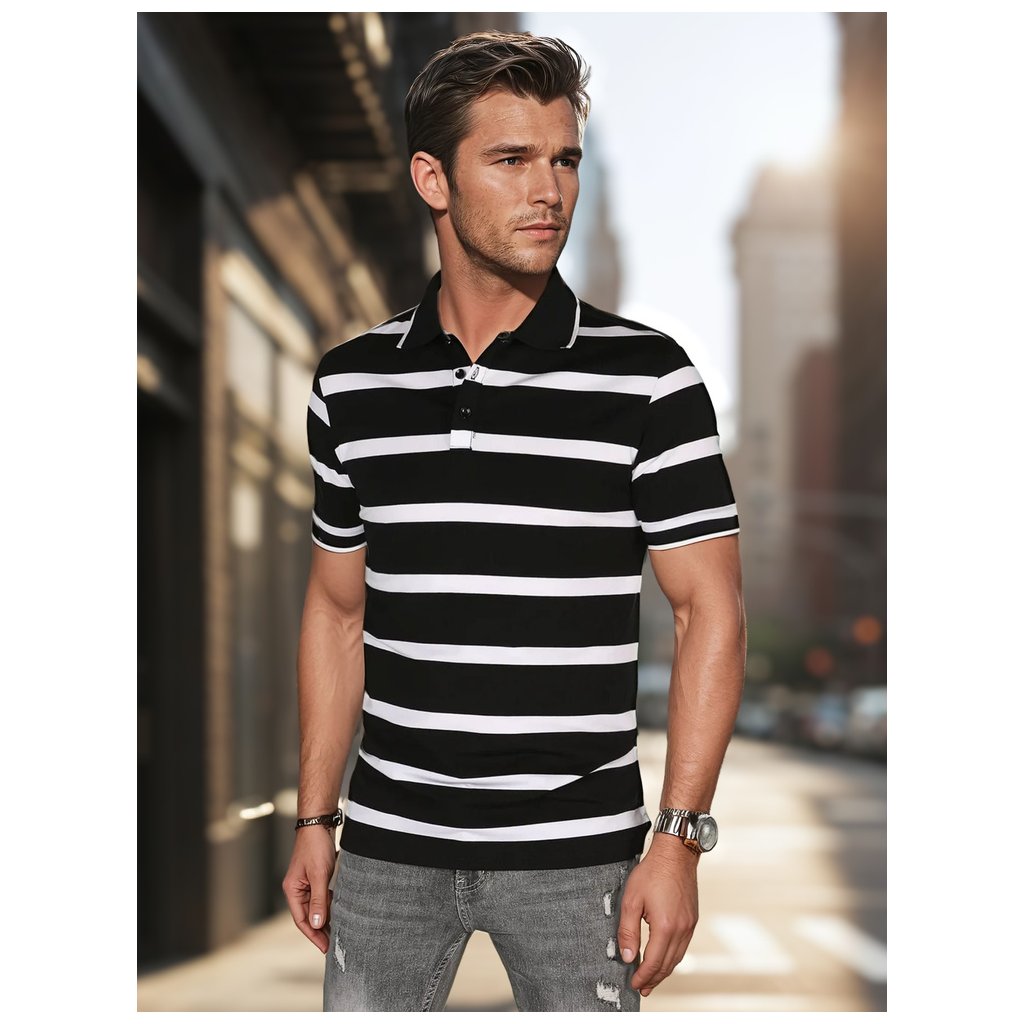 Toto pánske polo tričko s nadčasovými pruhmi je dokonalou kombináciou štýlu a pohodlia. Vďaka klasickému strihu a golieriku na gombíky je tento model ideálny na každodenné nosenie. Mäkká tkanina zaisťuje pohodlie a všestranný vzor sa skvele hodí k džínsom a teniskám.