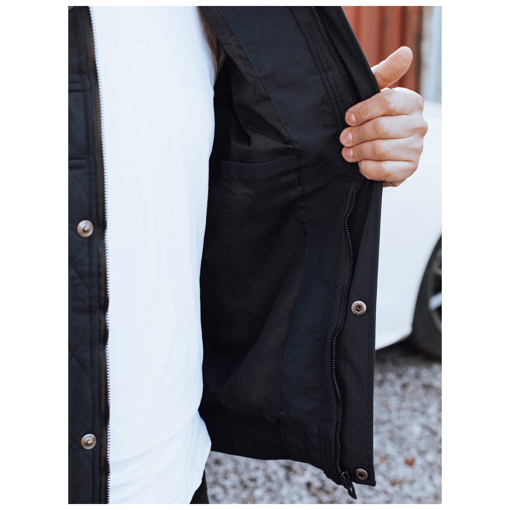 Táto pánska bunda na strednú sezónu má moderný strih a zapínanie na zips a cvoky. Je podšitá a ľahko vypchatá pre chladnejšie dni. Kapucňa je odnímateľná a nastaviteľná pomocou cvokov. Štyri vonkajšie vrecká a jedno vnútorné vrecko poskytujú praktickosť, zatiaľ čo rebrované manžety a lem zaisťujú pohodlné nosenie.