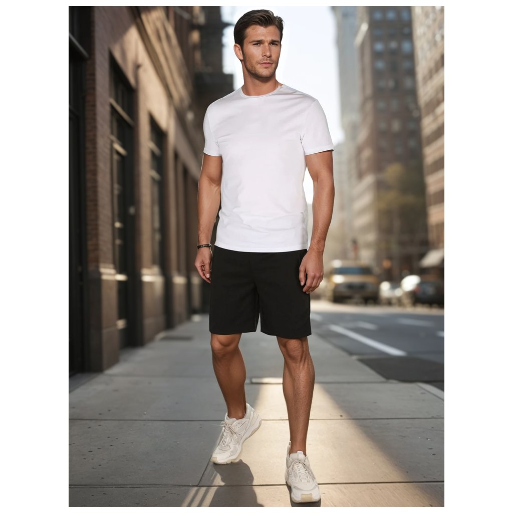 Tieto pánske ležérne kraťasy s elastickým pásom a praktickými vreckami na zips sú ideálne na teplejšie dni. Ich pohodlná dĺžka a rovný strih zaisťujú pohodlie pri každodenných aktivitách. Ideálne na leto.