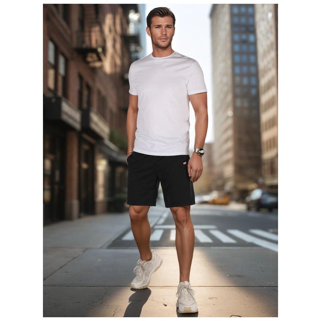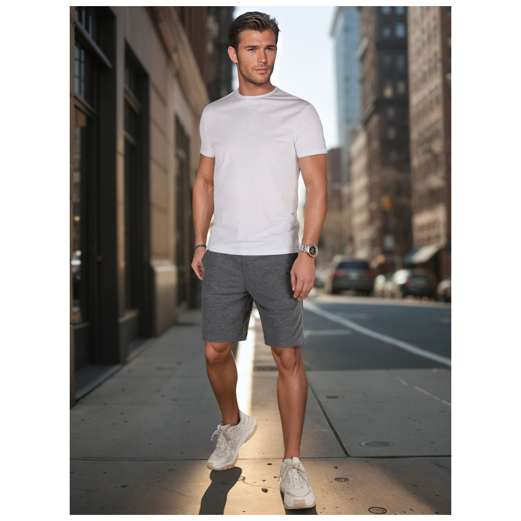 Pánske teplákové kraťasy v klasickom strihu s praktickými vreckami a sťahovacou šnúrkou v páse. Ideálne pre teplejšie dni, každodenné nosenie a ľahkú fyzickú aktivitu. Mäkký materiál je ideálny na jar.