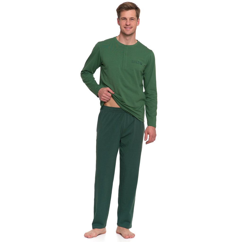 Pyžamový set Moraj PDM4600 015 kombinuje mäkkú a priedušnú bavlnu s elastickým materiálom pre celonočné pohodlie. Vrchný diel má dlhé rukávy a okrúhly výstrih pre voľnosť pohybu a pohodlie. Dlhé nohavice sú ideálne pre chladnejšie večery a rána doma. Praktické vrecká zvyšujú funkčnosť tohto setu pre každodenné nosenie. Voľný strih umožňuje pyžamu pohodlne splývať a prispôsobiť sa telu. Starostlivo upravený výstrih a mäkká látka zvyšujú pohodlie. Tento set je vhodný na spanie a relaxáciu doma bez pocitu prehriatia. Jeho všestrannosť z neho robí dobrú voľbu po celý rok. Je to praktická voľba pre mužov, ktorí si cenia jednoduchosť, pohodlie a solídne remeselné spracovanie. Vyberte si ho ako základné nočné prádlo, ktoré spĺňa očakávania pohodlia a funkčnosti. Bavlnený džersej s elastanomDlhý rukáv a dlhé nohavice