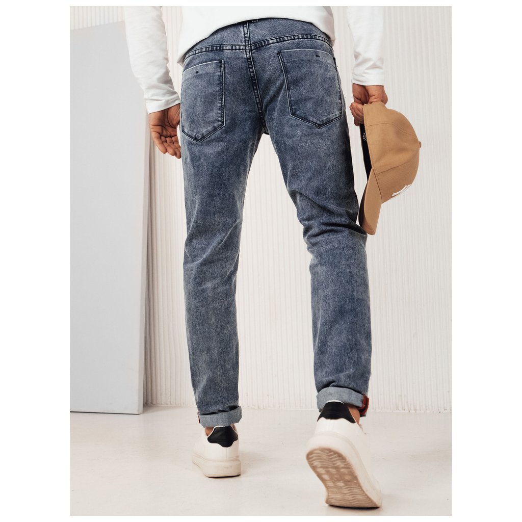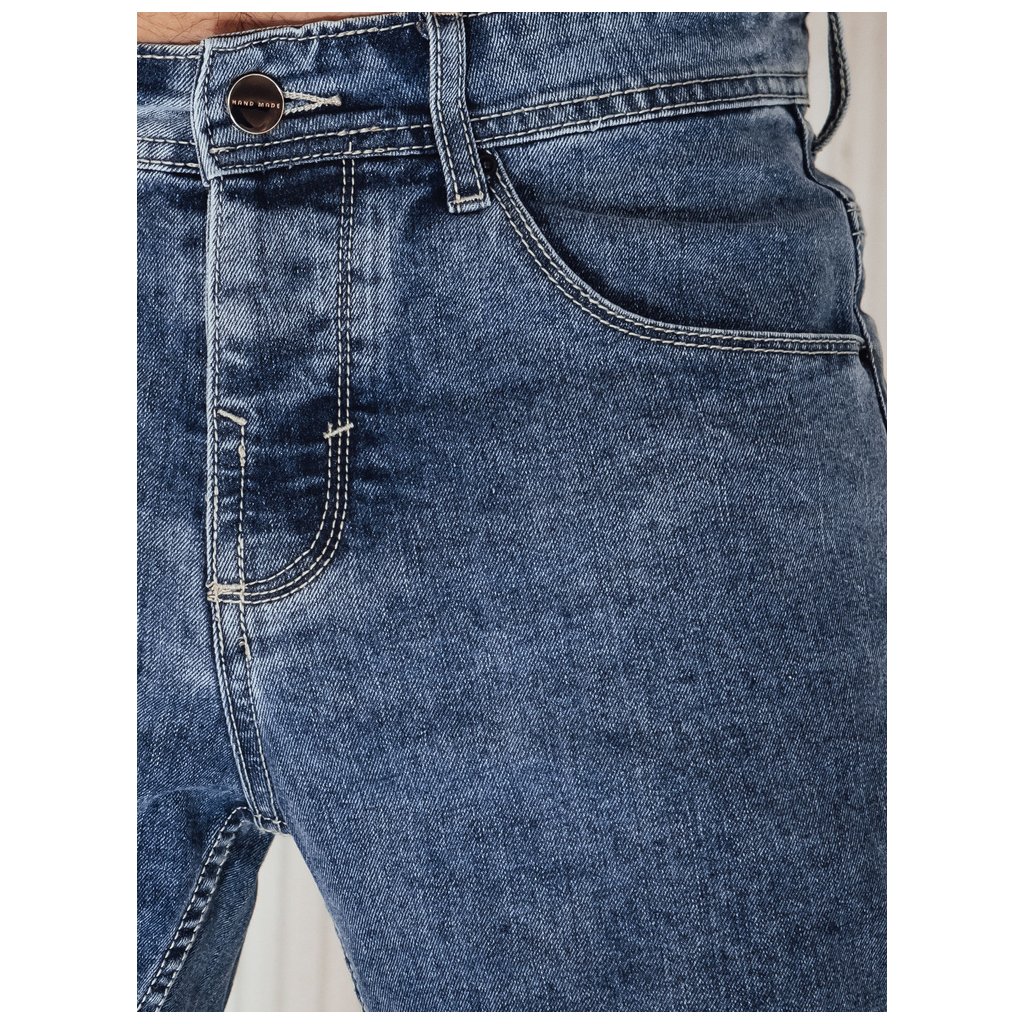 Pánske džínsové nohavice. Vyrobené z mäkkej látky. Zapínanie na gombíky. Tri predné vrecká. Dve zadné vrecká. Mierne zúžené nohavice. Zloženie: 98 % bavlna, 2 % elastan.