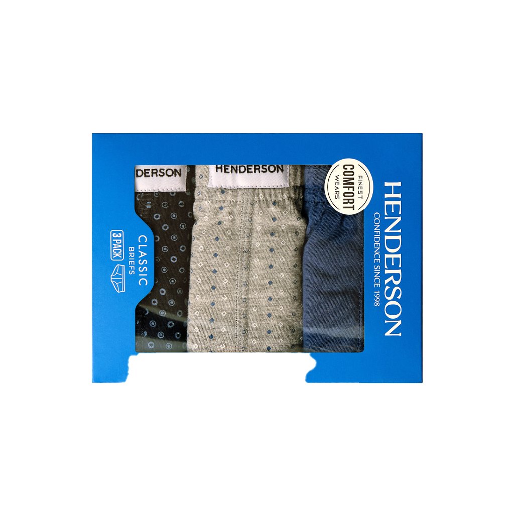 Pánske slipy Henderson Classic v balení po troch kusoch kombinujú pohodlie, kvalitu a štýl. Vyrobené z mäkkej a priedušnej bavlny, perfektne sedia na tele a zaisťujú celodenný komfort. Klasický strih s elastickou pásovou gumou, ktorá je obšitá látkou, dopĺňa decentná nášivka s logom značky. Balenie obsahuje tri rôzne farebné varianty – jednofarebné aj s jemnou potlačou – ideálne na každodenné nosenie aj obmenu šatníka.