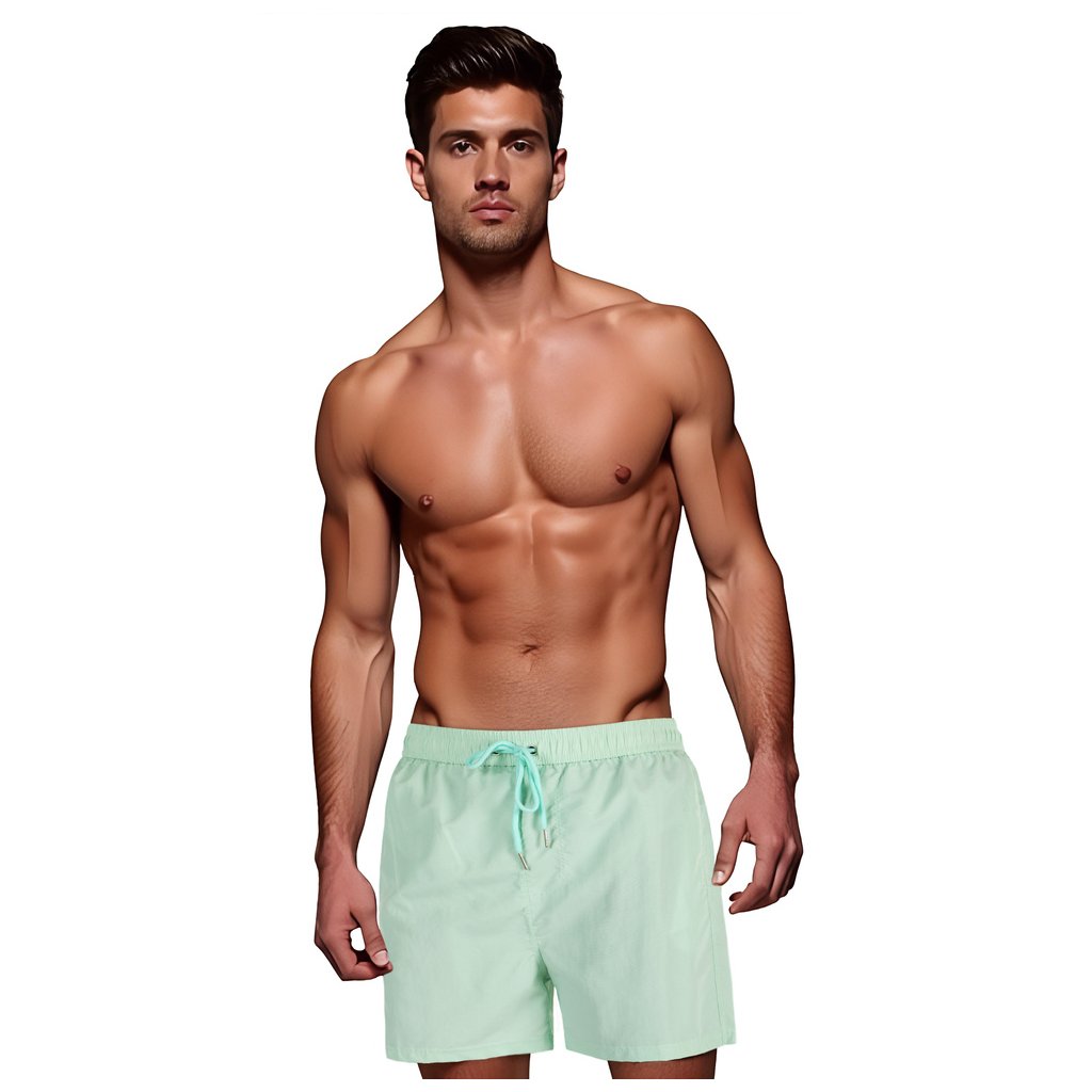 Pánske plavecké šortky s elastickým pásom a sťahovacou šnúrkou sú nevyhnutnou letnou súčasťou oblečenia. Sú vyrobené z rýchloschnúceho materiálu a poskytujú pohodlie pri plážových aj vodných aktivitách. Klasický strih a univerzálna dĺžka zaručujú letné pohodlie.