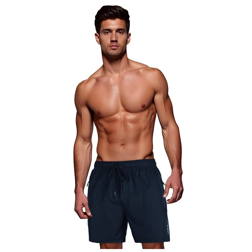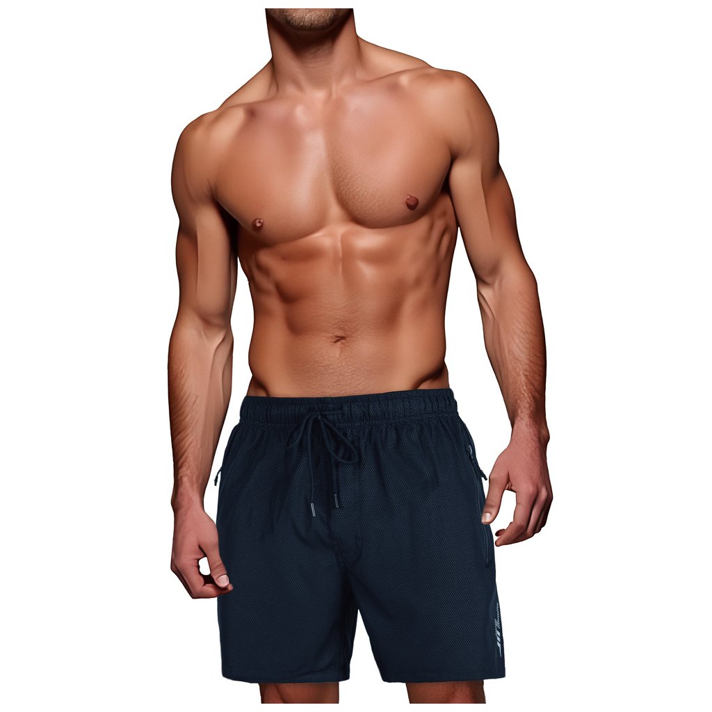 Štýlové pánske plavky klasického strihu s elastickým pásom a sťahovacou šnúrkou. Ľahká, rýchloschnúca mikrotextúrovaná tkanina zaisťuje pohodlie pri plávaní a opaľovaní. Bočné vrecká na zipsy a logom dodávajú moderný športový nádych. Ideálne pre letnú sezónu.