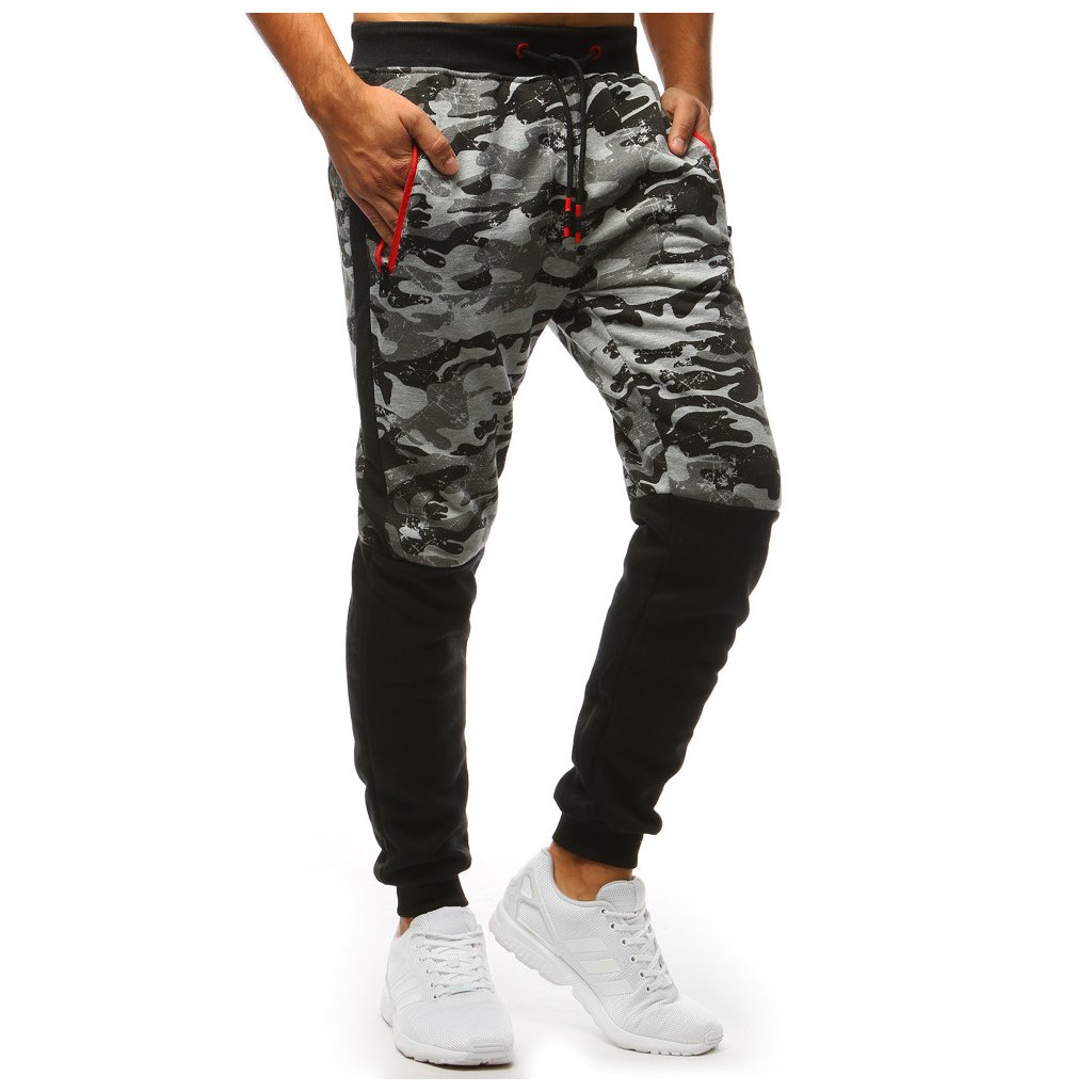 Pánske teplákové nohavice camo sivé Dstreet UX3493