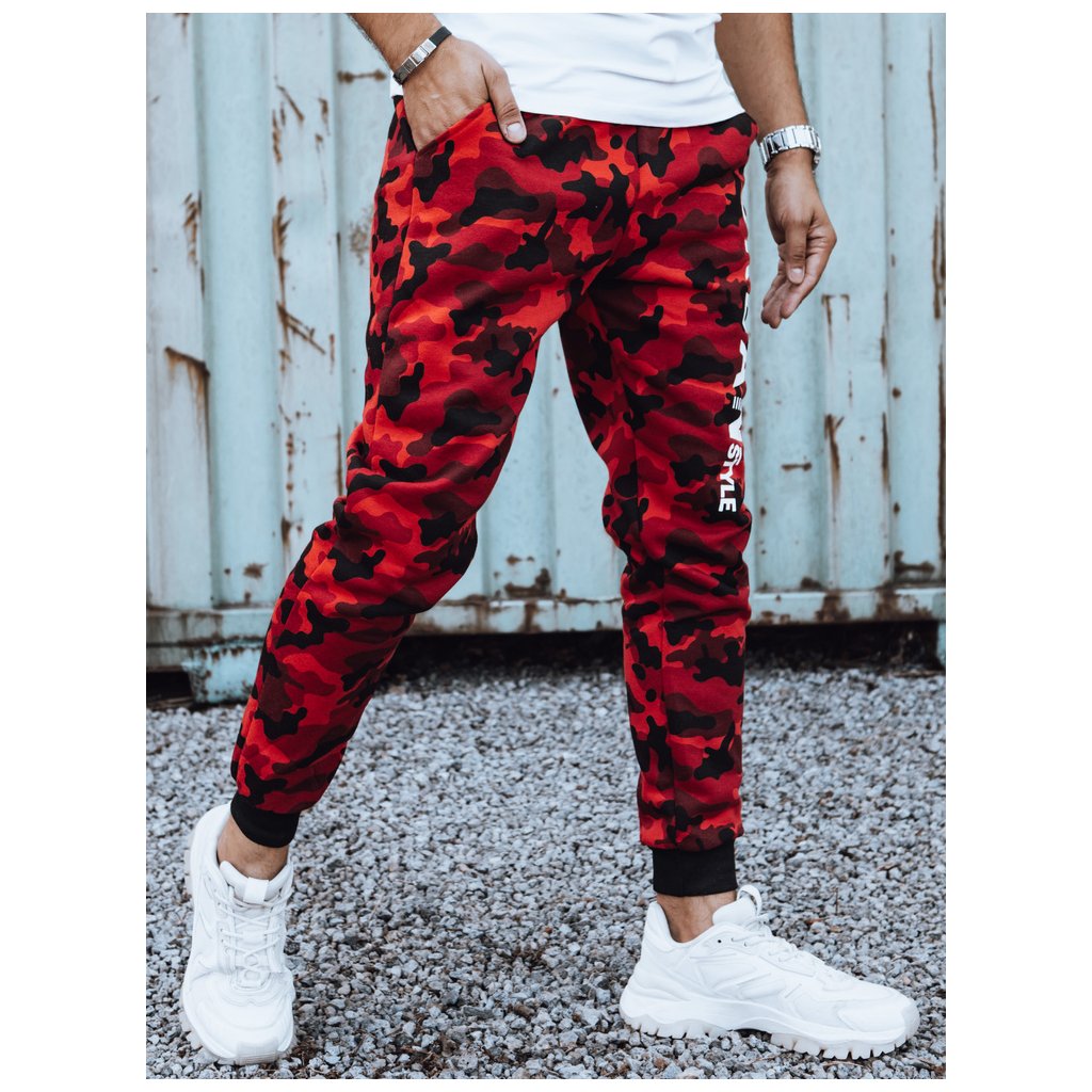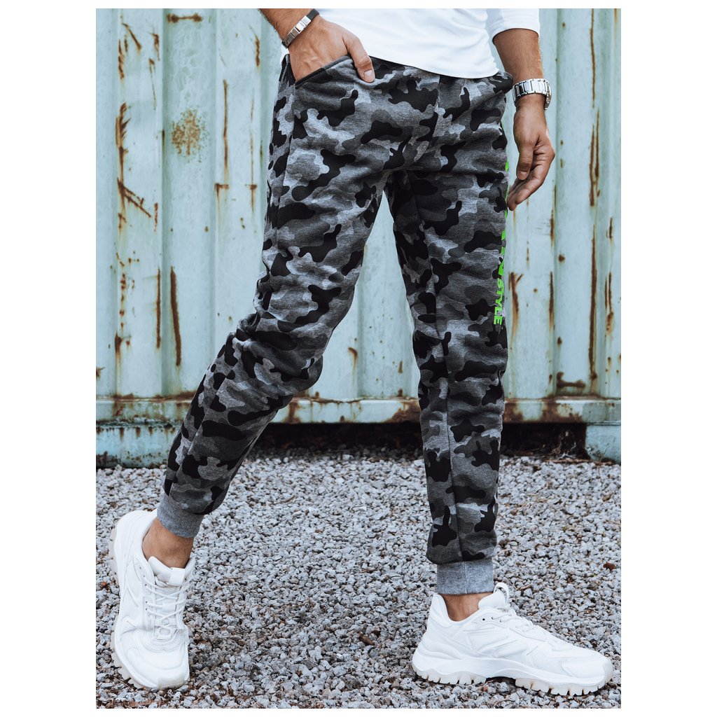 Pánske tepláky. Vyrobené z mäkkej, príjemnej látky. Módny maskáčový vzor. Elastický pás a nohavice. Elastický pás s dodatočným sťahovaním pomocou šnúrky. Dve predné vrecká. Potlač na ľavej nohavici. Materiál: 65 % bavlna, 35 % polyester.